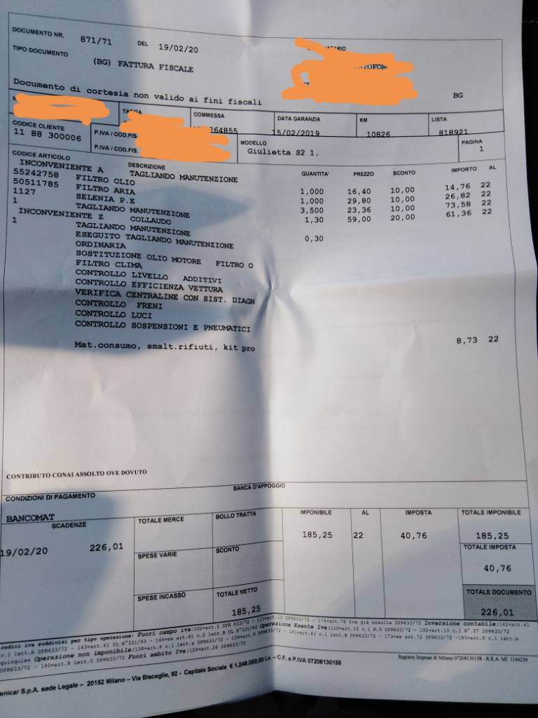Dunque, dopo quasi 2 settimane senza sentire l'officina stamattina ho dato un colpo di telefono, così per capire che punto fossero, o se semplicemente si erano scordati di me.