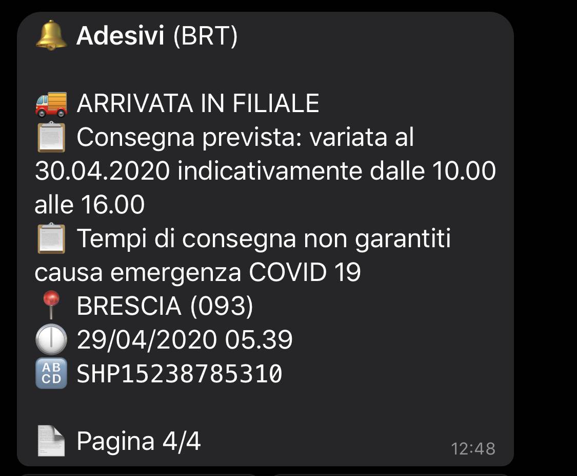 Per chi si stesse chiedendo cos’è quella schermata, ebbene è @TrackBot, un bot di telegram per seguire le spedizioni.