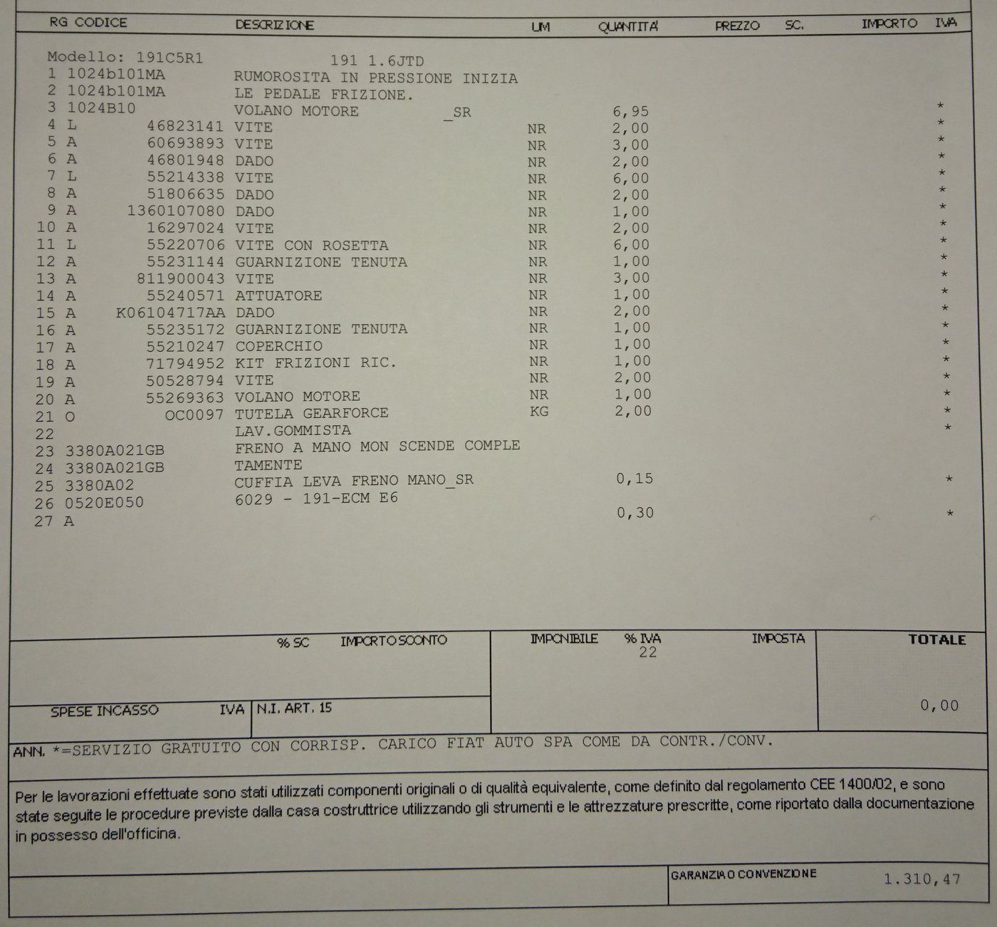 a questo punto credo che qualcosa l'abbiano fatta. infatti come visibile dal documento allegato in basso, oltre agli interventi su frizione e altre piccolezze da me segnalate, noto ancora una volta la scritta "6029 - 191 ECM e6". che abbiano rieseguito l'aggiornamento? che abbiano capito la causa della perdita di prestazioni? in ogni caso non mi è stato comunicato nulla e sto ipotizzando,ma sono sicuro che l'auto sia tornata come prima.