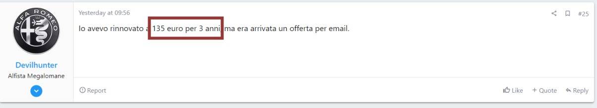 129 euro era il prezzo di listino di qualche anno fa, che poi è esattamente la cifra che ho pagato io per il rinnovo 3 anni e mezzo fa. Ora costa 179 euro, salvo forse offerte speciali (che a me non sono mai arrivate), o buon cuore del concessionario.A proposito, ho letto in diversi posti qui che il prezzo dell'aggiornamento è di circa 130 EUR ed è lo stesso in Germania e Polonia, c'era anche un prezzo di 119 EUR che alcuni proprietari hanno ottenuto