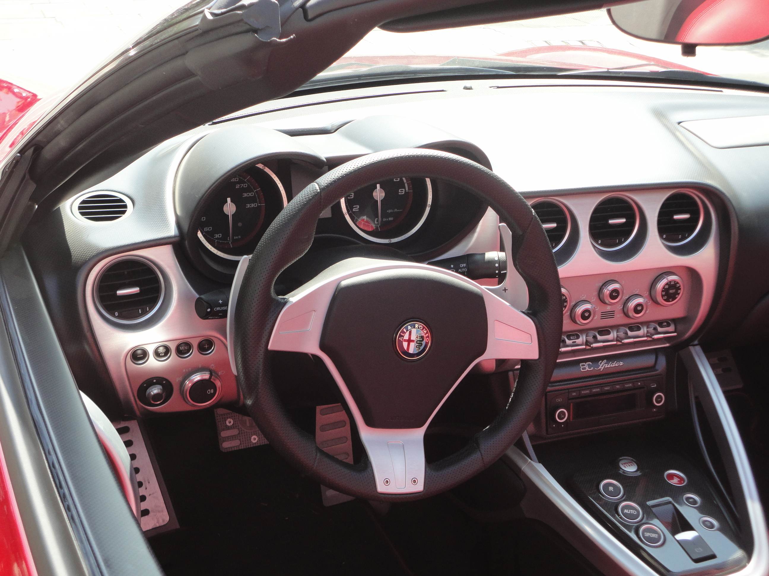 ³, la distribuzione è a 4 valvole per cilindro, azionate da due alberi a camme per bancata, sviluppa una potenza massima di 450 CV (331 Kw) a 7.000
