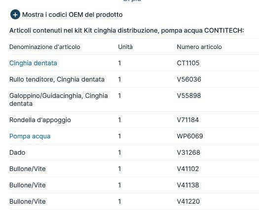 ti ringrazio ..ma anche a me non convinco molto i pezzi originali , costano molto e la qualità non sempre è miglioreLa cinghia di distribuzione l’olio e il filtro olio, prendili originali. Sostituisci anche quella dei servizi