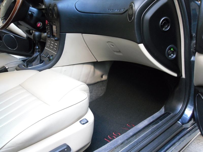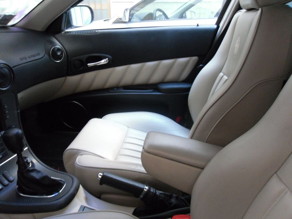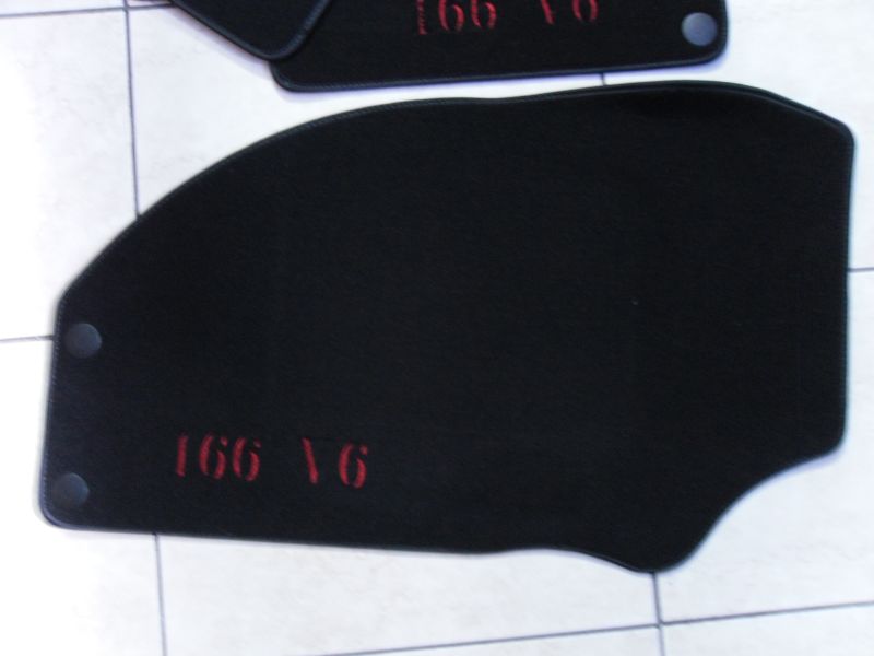 Poi come potete vedere ho sostituito il fondo moquette, di colore antracite (proviene da una 166 con interni neri) al posto del beige. Il contrasto del fondo scuro esalta ancora di più il beige dei sedili. Ovviamente sono stati sostituiti anche i battitacco, adesso in color nero. A porte chiuse fa un bell'effetto raccordandosi con il lato inferiore del pannello porta che nella prima serie è nero.