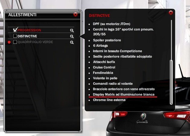...o se prendi una distinctive anzichè una progression. La progression ha l'illuminazione rossa, mentre la distinctive ce l'ha bianca (anche senza sport pack).