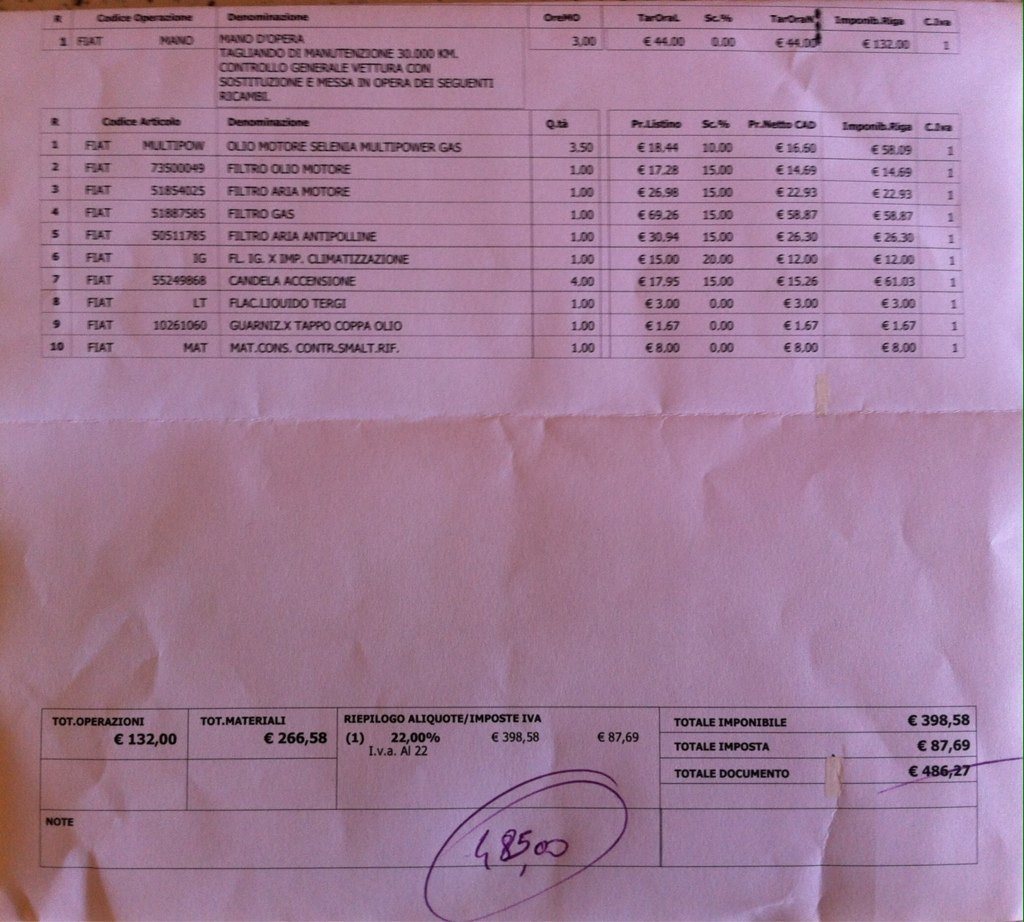 Arrivano i 29000 km e decido di prendere l'appuntamento anche perché quasi 2 anni mi sembra troppo tempo...ma la sorpresa arriva al preventivo,il primo tagliando mi e costato ben 485 euro