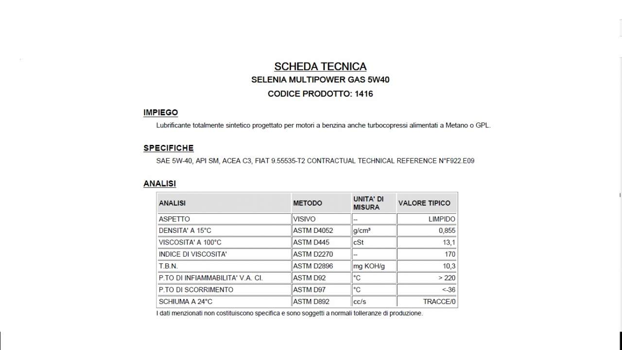 Scheda tecnica Castrol Edge FST 5w30.jpg Scheda tecnica Selenia Multipower GAS 5w40.jpg