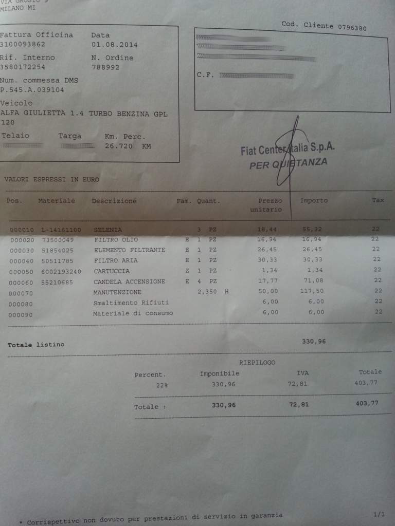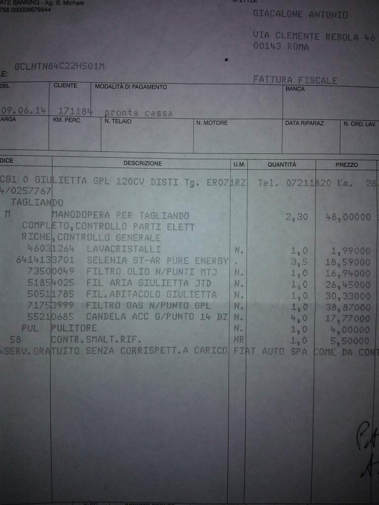Re: Giulietta - 1.4 TB gpl 120cv - tagliandi