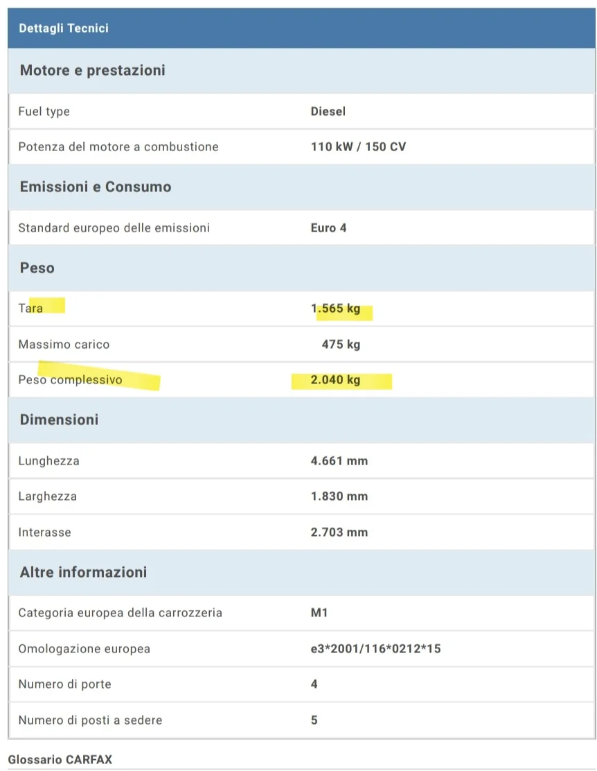 Va comunque mappato il diesel, peso complessivo della macchina sono 2040kg dati tecnici dichiarati. Ci vogliono come minimo 200cv.