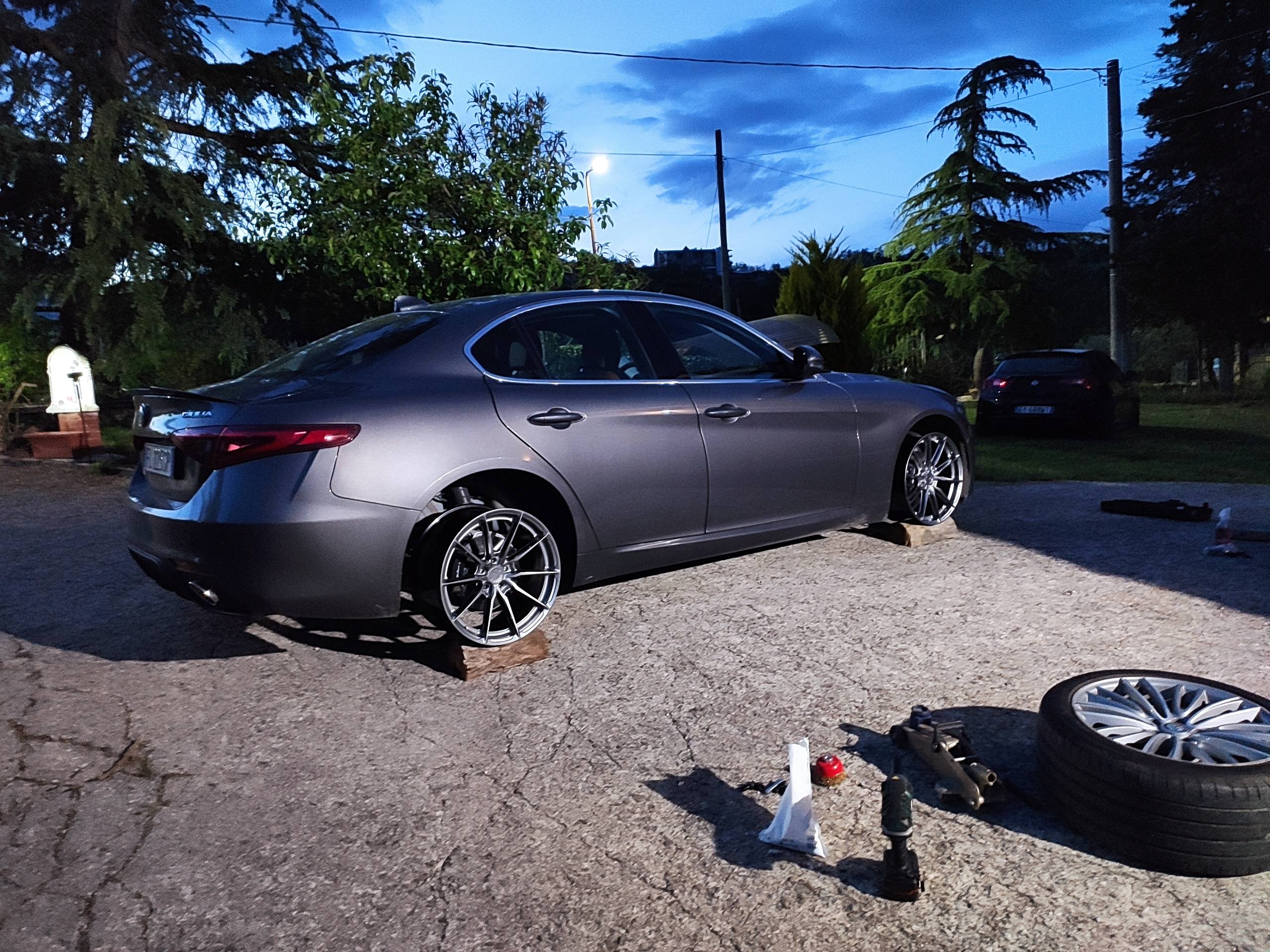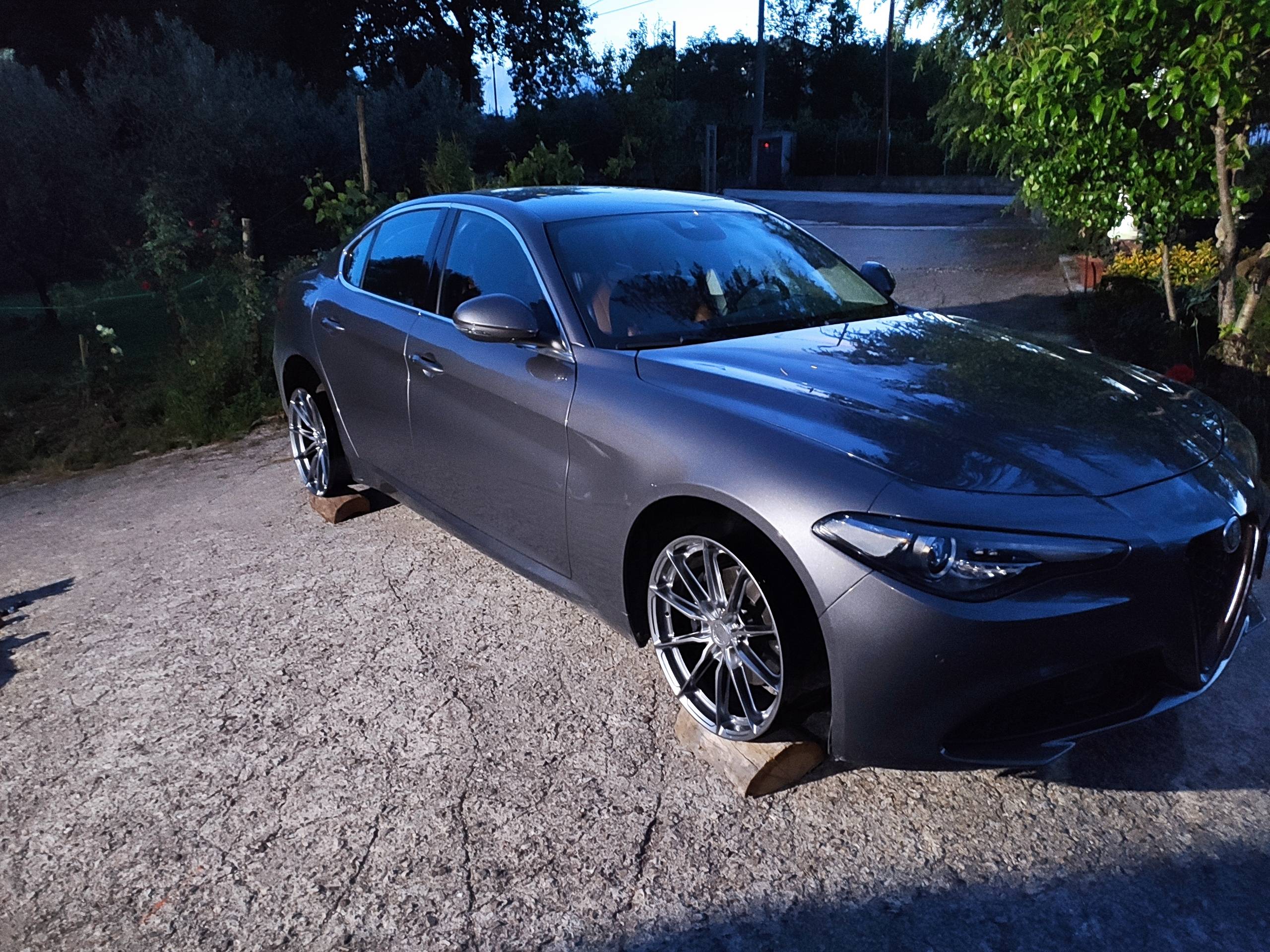 La mia Giulia è molto simile alla tua esteticamente, però è il 150 cv manuale grigio stromboli...stessi interni, stesse modifiche al posteriore e cerchi da 19 ma diversi dai tuoi...con dam, spoiler e cerchi da 19 diventa un'altra macchina e gli interni tabacco, a mio parere ovviamente, sono i più belli in assoluto...complimenti!Grazie, se tutto va bene metà settimana li monto.