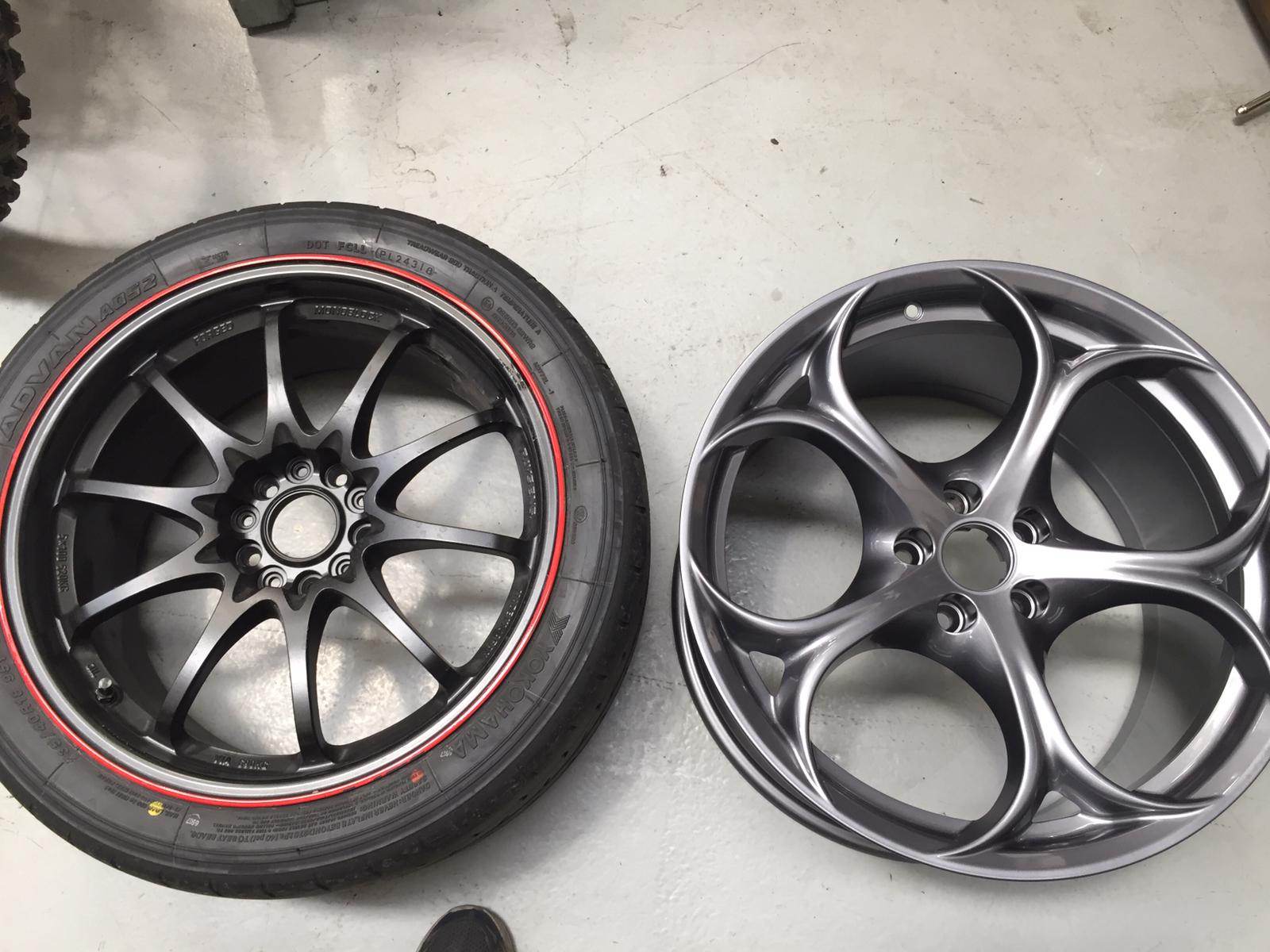 A dx un 18" montato su Mitsu Evo, a Sx il cerchio che adoro di +