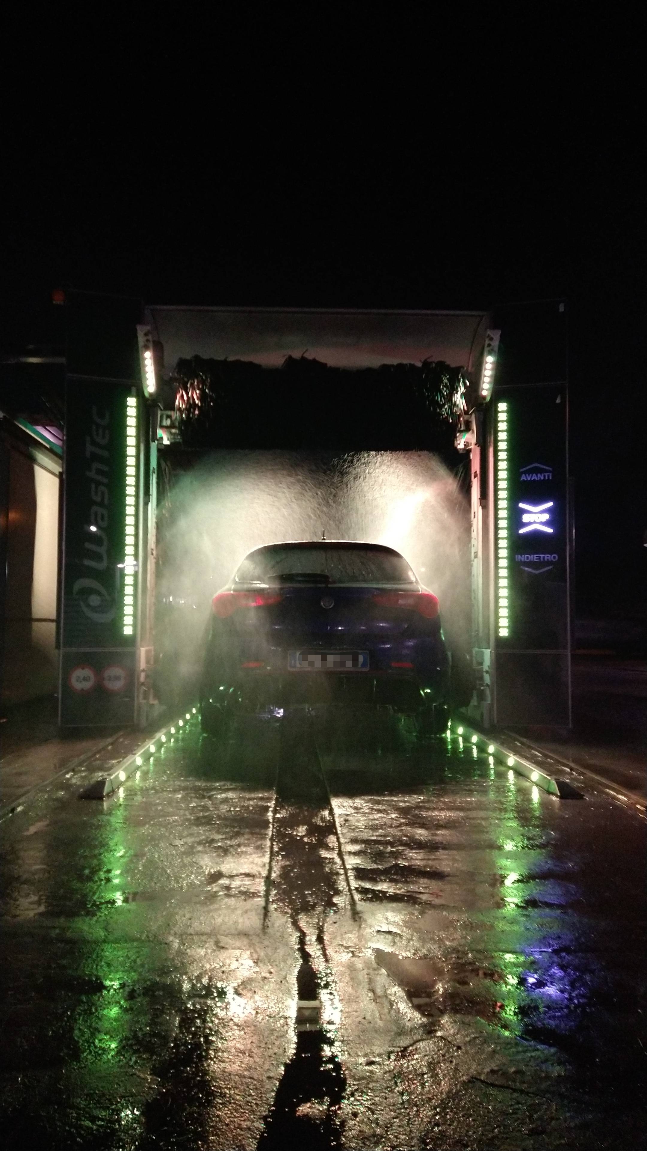 Prima di rientrate al box passata veloce all'autolavaggio: prima a mano con la schiuma attiva e poi rulli automatici senza spazzole per una seconda passata comprensiva di cera ed asciugatura.