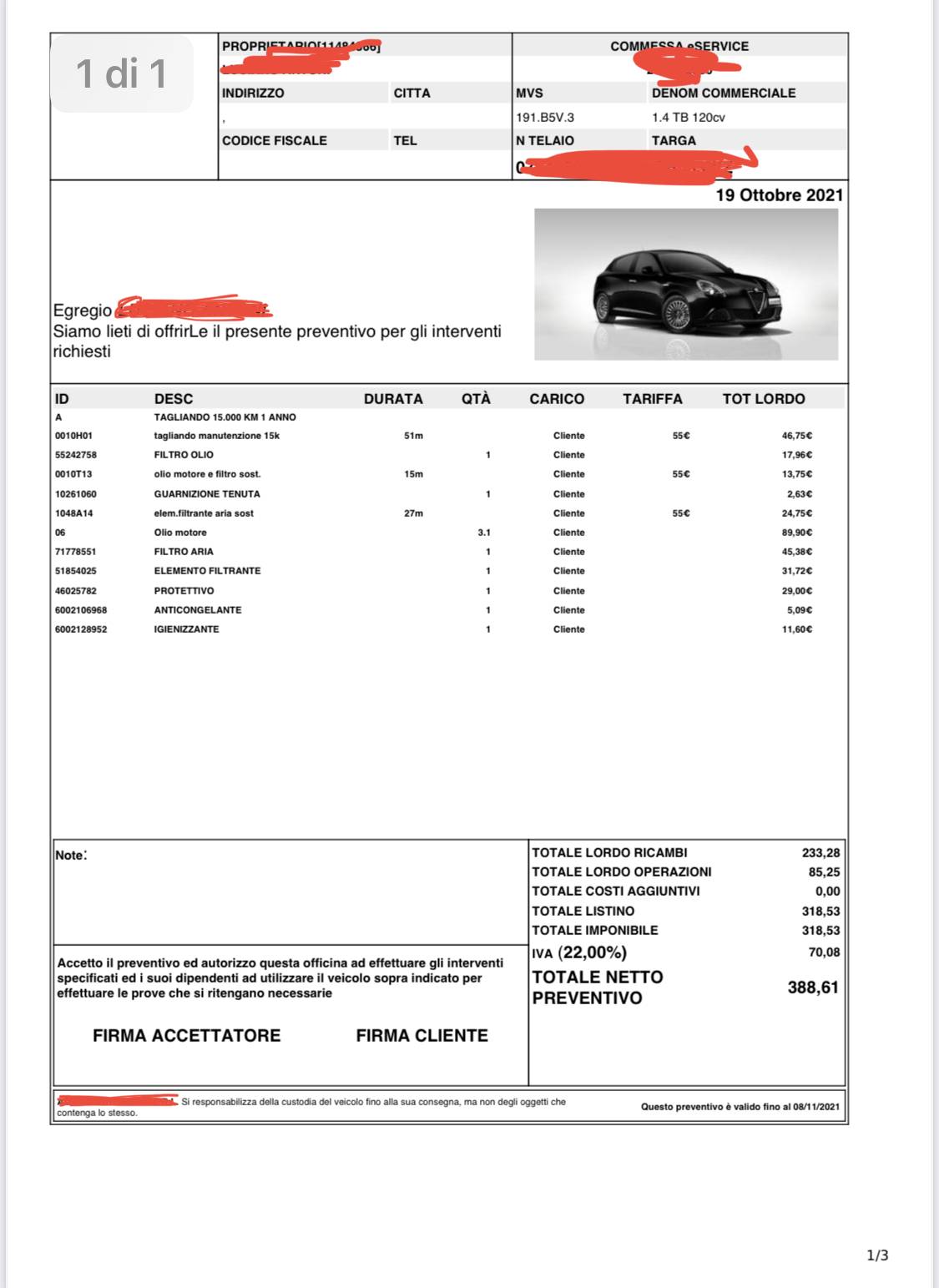 Primo vero tagliando pagato 230 circa in Alfa.