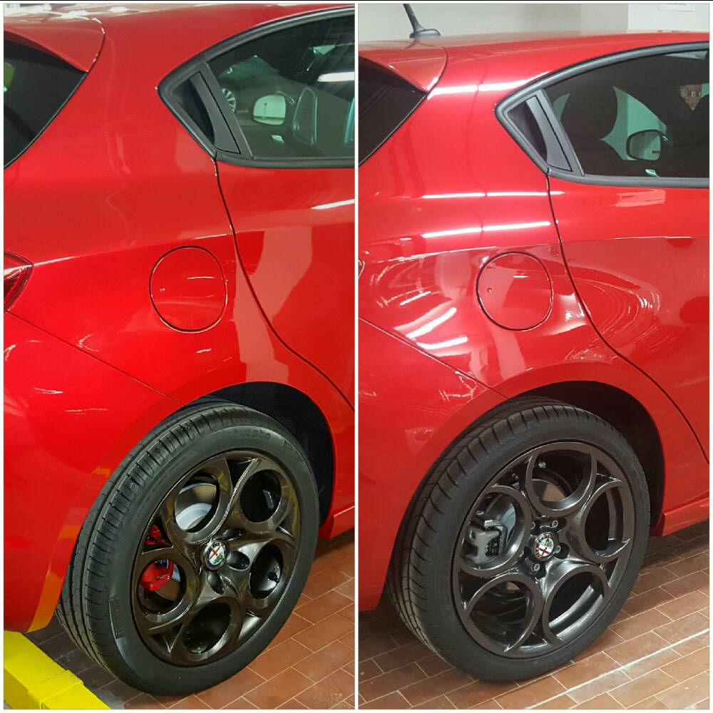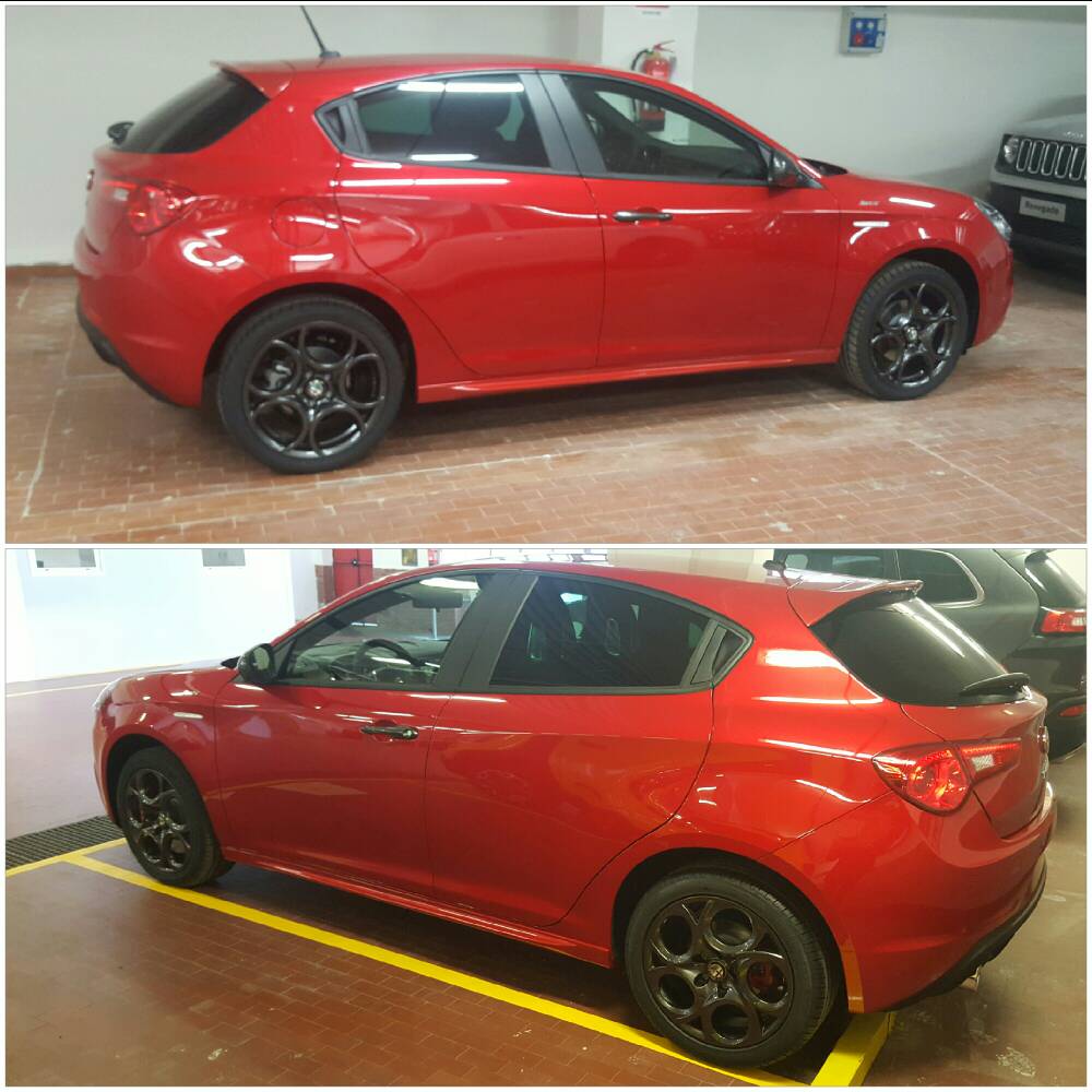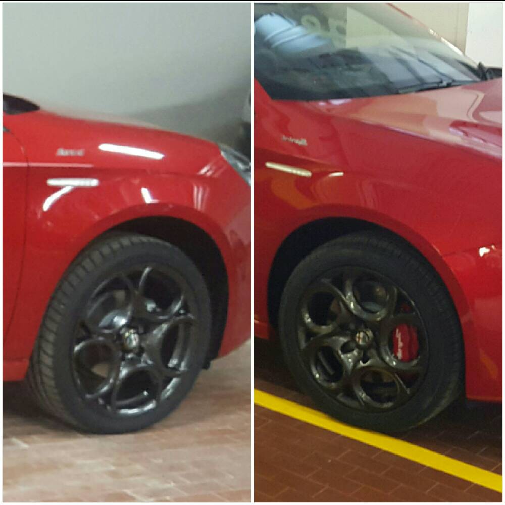 Ma con i 18 non cambia l'assetto, anche se forse esteticamente rende di più, però questi sono quelli che nascono per la speciale, non ordinabili su altre versioni, quindi direi originale al 100%, tieni conto che la speciale ha anche gli ammortizzatori con set up sportivo, che paradossalmente la rendono più alta. Ti allego le foto di una sprint (non speciale) rosso competizione con cerchi da 18.....si nota inesorabilmente la mancanza delle pinze brembo.