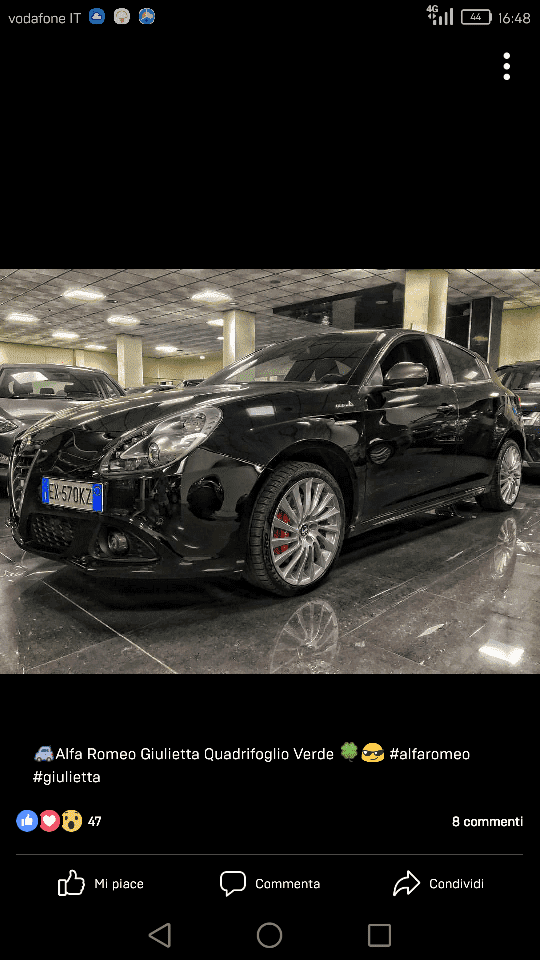 Luisio ti chiedo ancora scusa se metto questa foto nel tuo garage. Cmq questa è una Giulietta 170cv. Un venditore qua vicino me la vende è ha scritto nell'annuncio Giulietta qv. Nella pagina Facebook l'abbiamo linciato perché nn è una qv ma ha allestimento il logo infatti si vede c'è scritto qvlineSe non erro no era solo un allestimento ... forse prima veniva indicata la versione 170 CV con "sportiva" è un piccolo Quadrifoglio