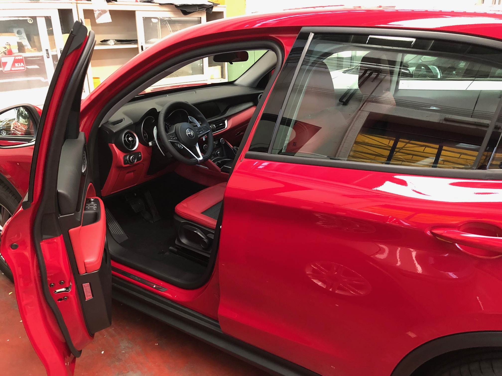 La luce non premia il vero colore rosso.Ciao, è arrivata, ho fatto un salto veloce a vederla, più tardi ritorno per gustarmela con calma, dalle fotografie il colore non rende affatto, il Rosso Alfa è stupendo (secondo i miei gusti ovviamente) anche gli interni sono veramente belli, allego le primissime foto che ho fatto, non sono bellissime perché l'auto è ancora da pulire ed e parcheggiata in mezzo ad altre, ciao