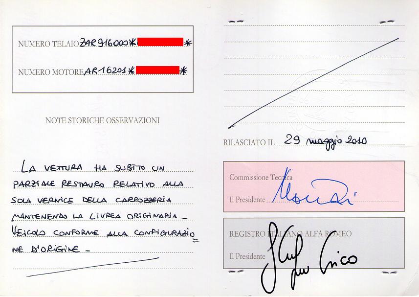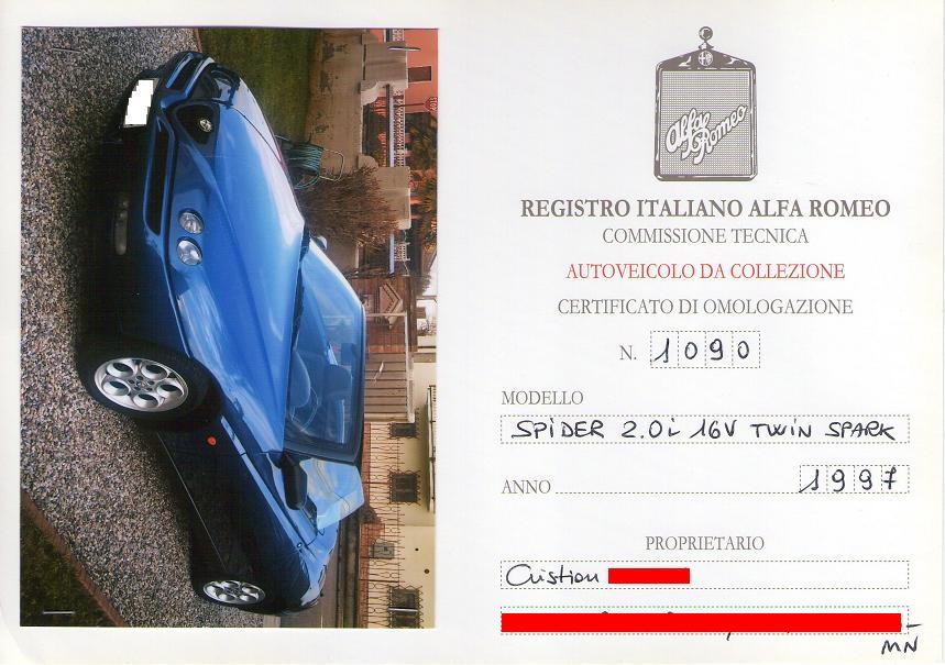 E' con grande orgoglio che posto, finalmente, le immaginij del documento di omologazione della Spider.