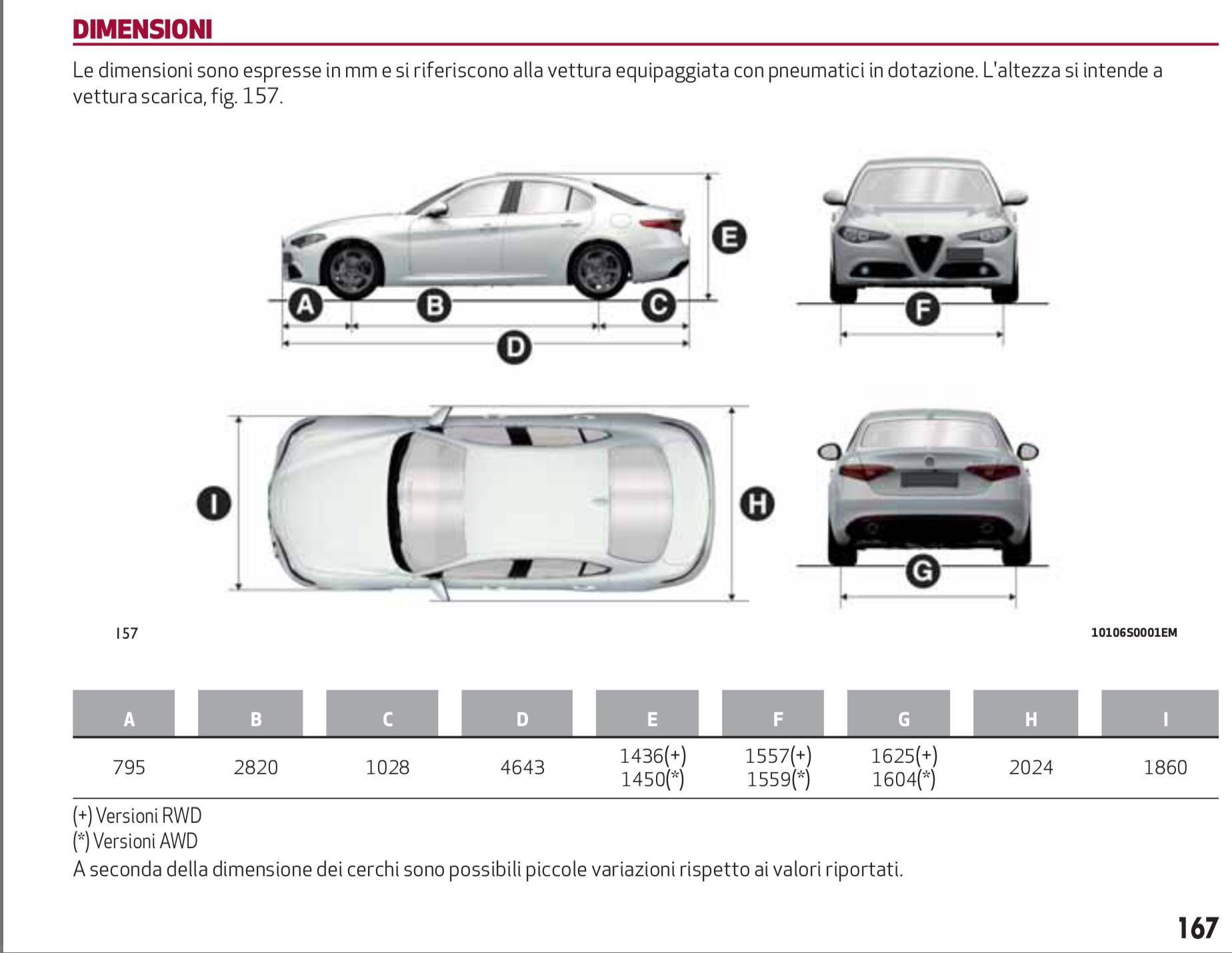 Trovo strana la misurazione indicata nel libretto: La RWD che esce standard con cerchi a 16 oppure 17 ha una carreggiata più larga della AWD che esce con i 18. Se questa differenza è data solo dai cerchi/penumatici, e la AWD è uguale alla RWD, la doppia misurazione era inutile indicarla... mettevano un unica misurazione specificando che poteva variare...