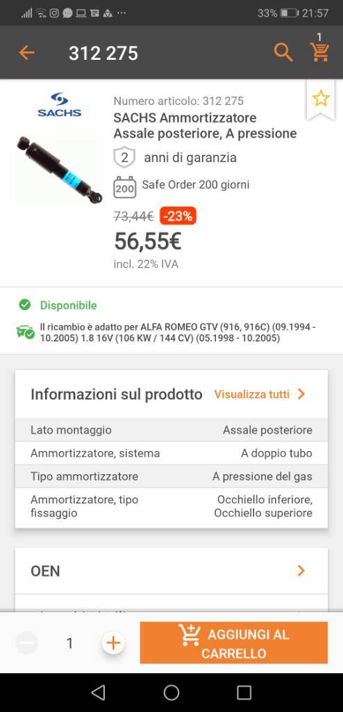 perfetto. Assicurati che siano comunque ammortizzatori A taratura sportiva.