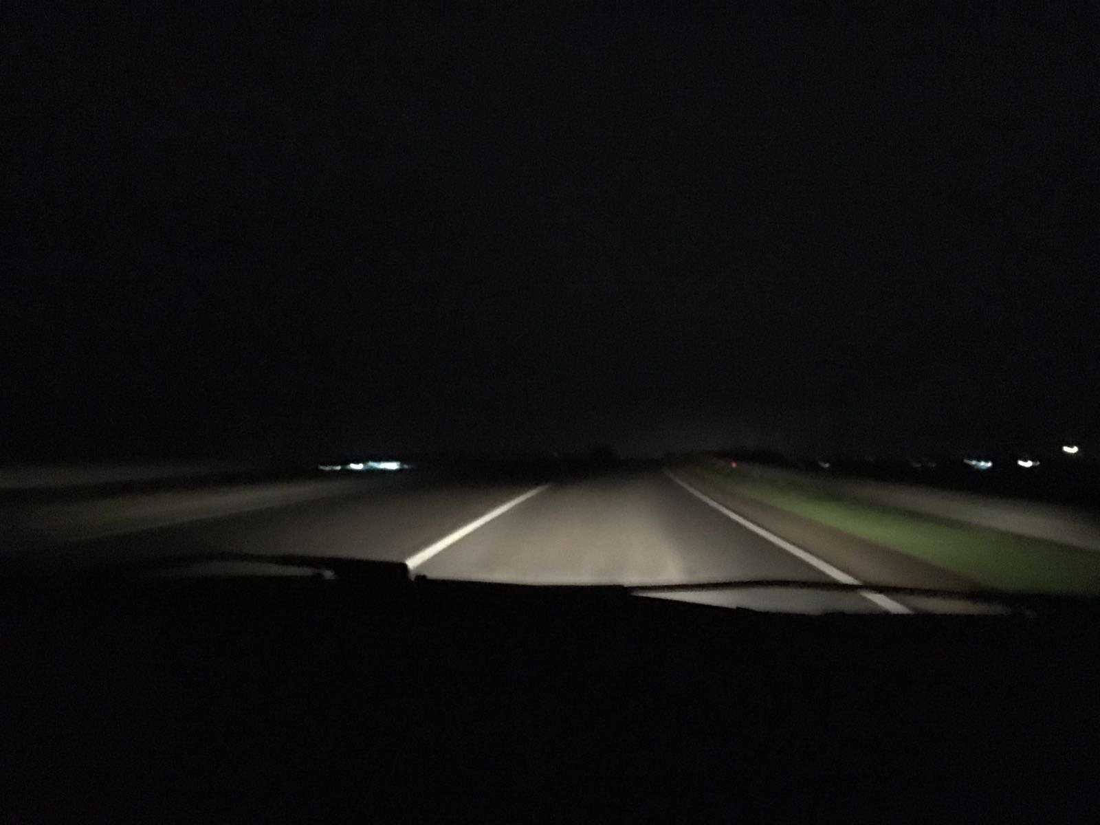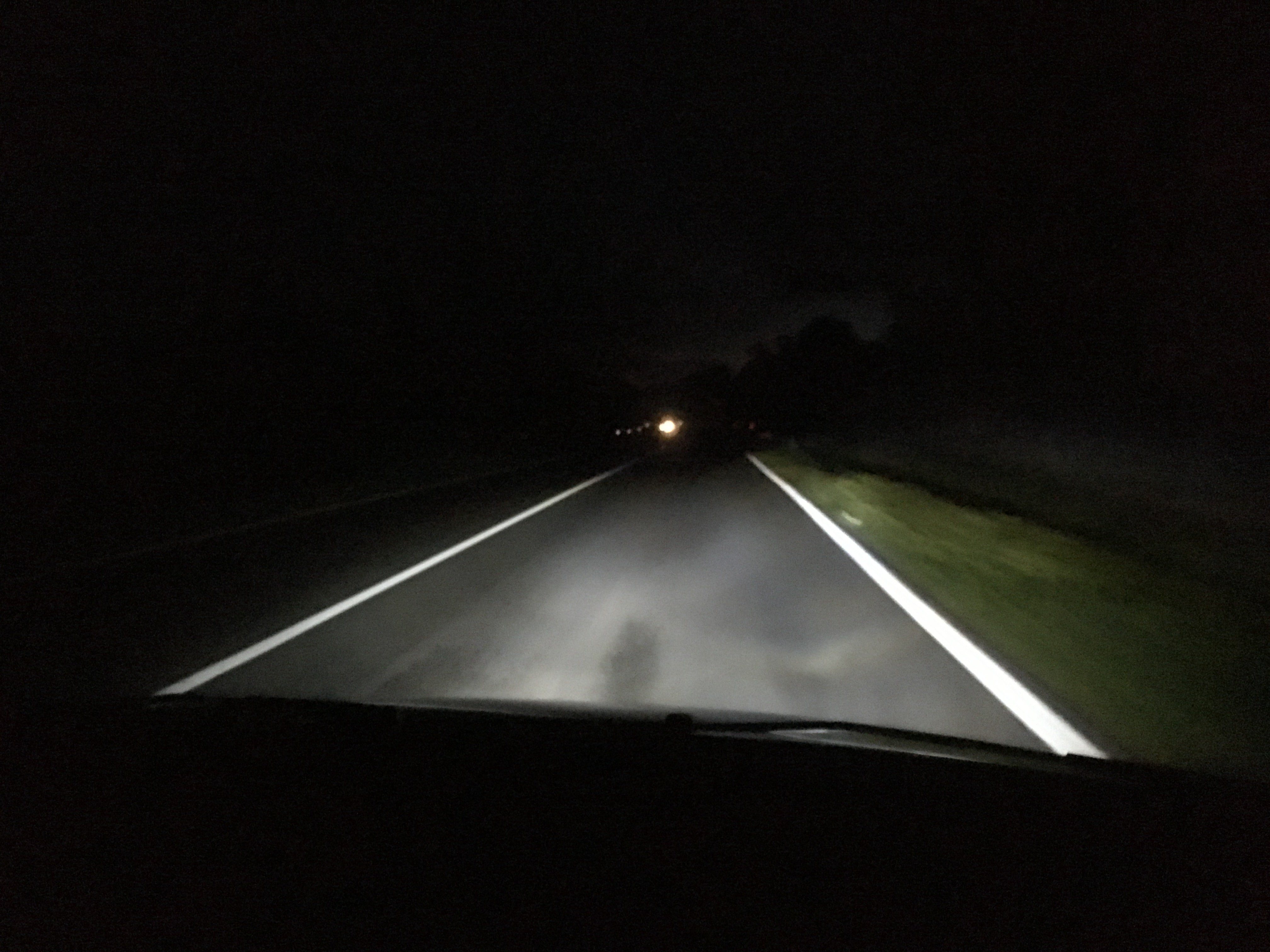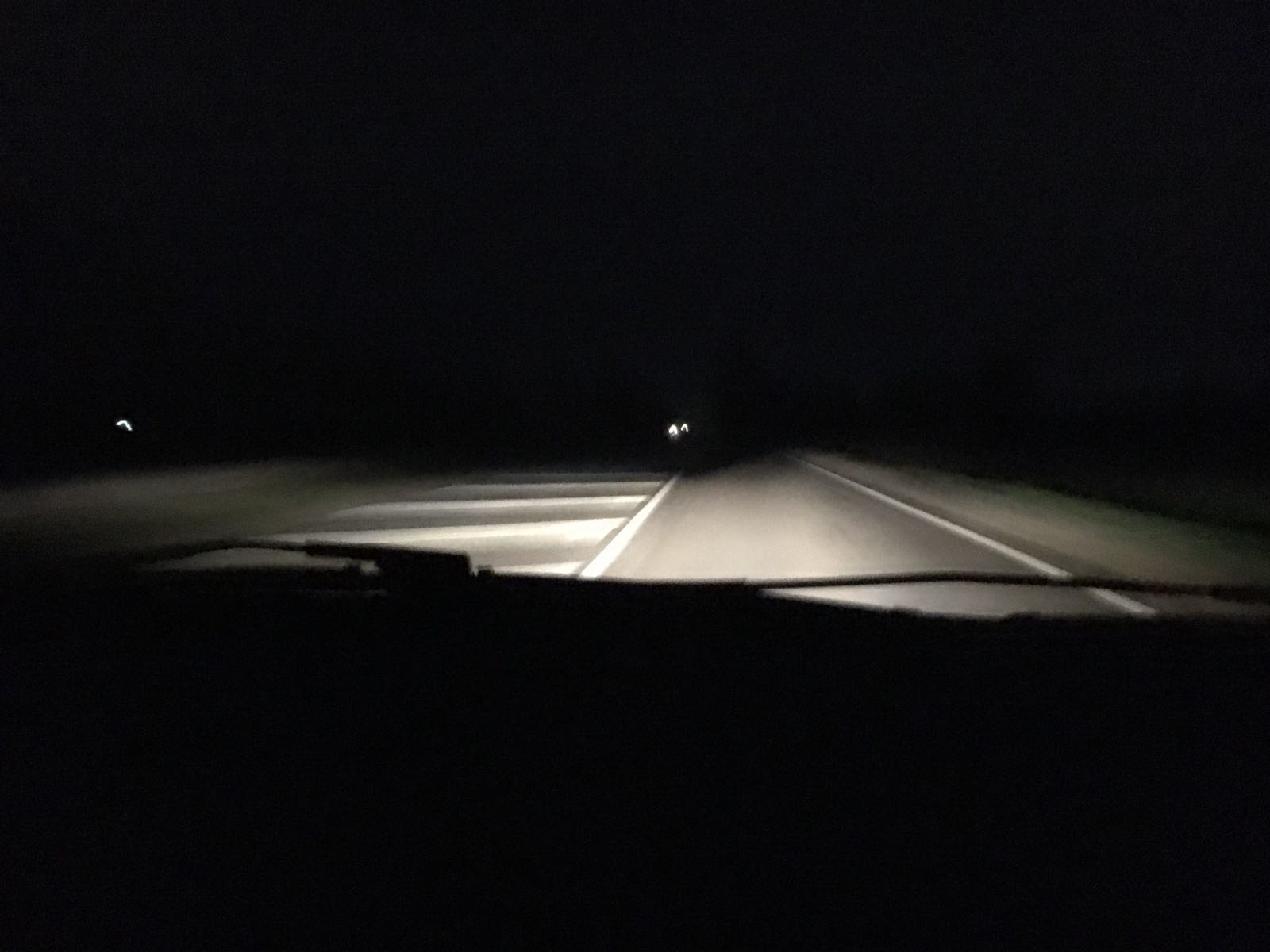 Con gli abbaglianti (per ora, ancora alogeni. Infatti si nota la sfumatura gialla):