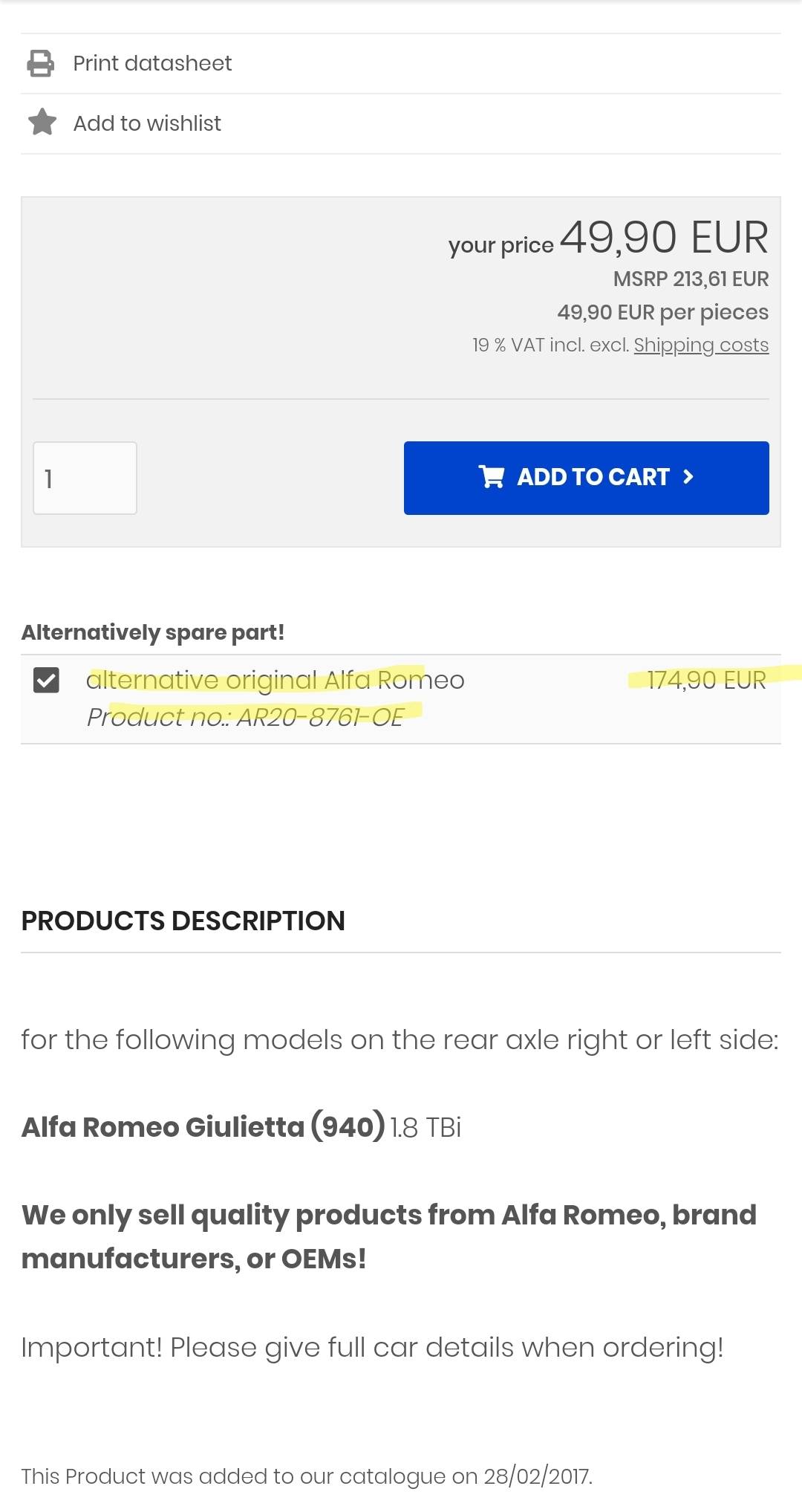che devi cliccare sulla spunta accessoria per ordinare proprio le molle ORIGINALI SPECIFICICHE DI FABBRICA e il prezzo lievita a 240€ CADAUNAio ho qste le molle -25/20 quali sarebbero? Io ho visto solo -30. Mi andrebbero benone -20 mm .