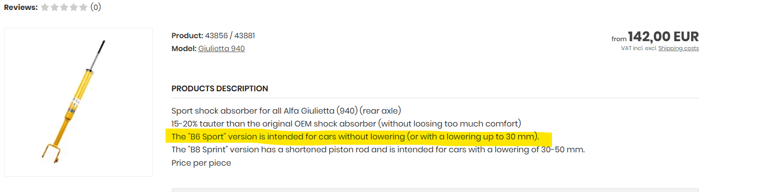 In effetti hai ragione… si potrebbero mettere le molle eibach su gli ammo novitec?Vabbe' il solo kit molle rispetto al kit Eibach costa 20 euro meno, non ci vedo una grande differenza di prezzo. In più abbassa di 40 mm cosa che io non voglio. Preferico i - 30 mm del kit Eibach.