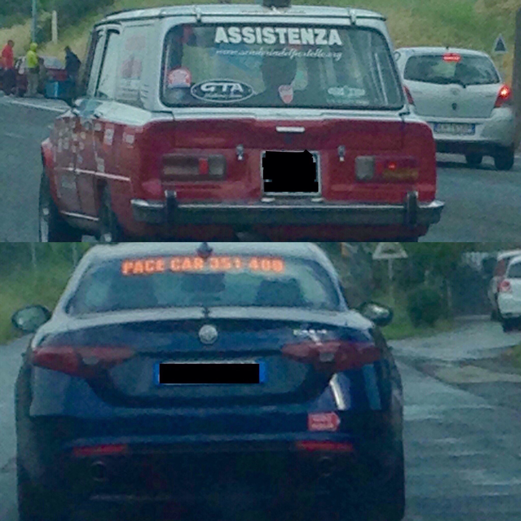 Maggio 2017, Via Cassia Bis a nord di Roma: incrocio la Millemiglia dove la Giulia fa sia da assistenza che da pace car. Ma significa che ero primo a bordo della mia 156 SW? [emoji23]