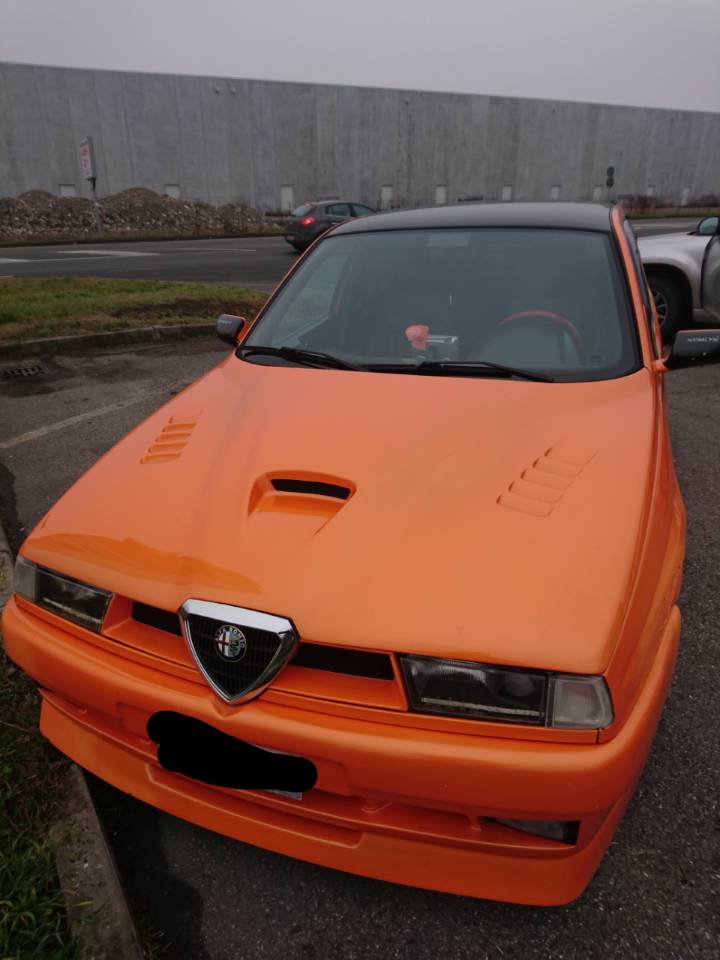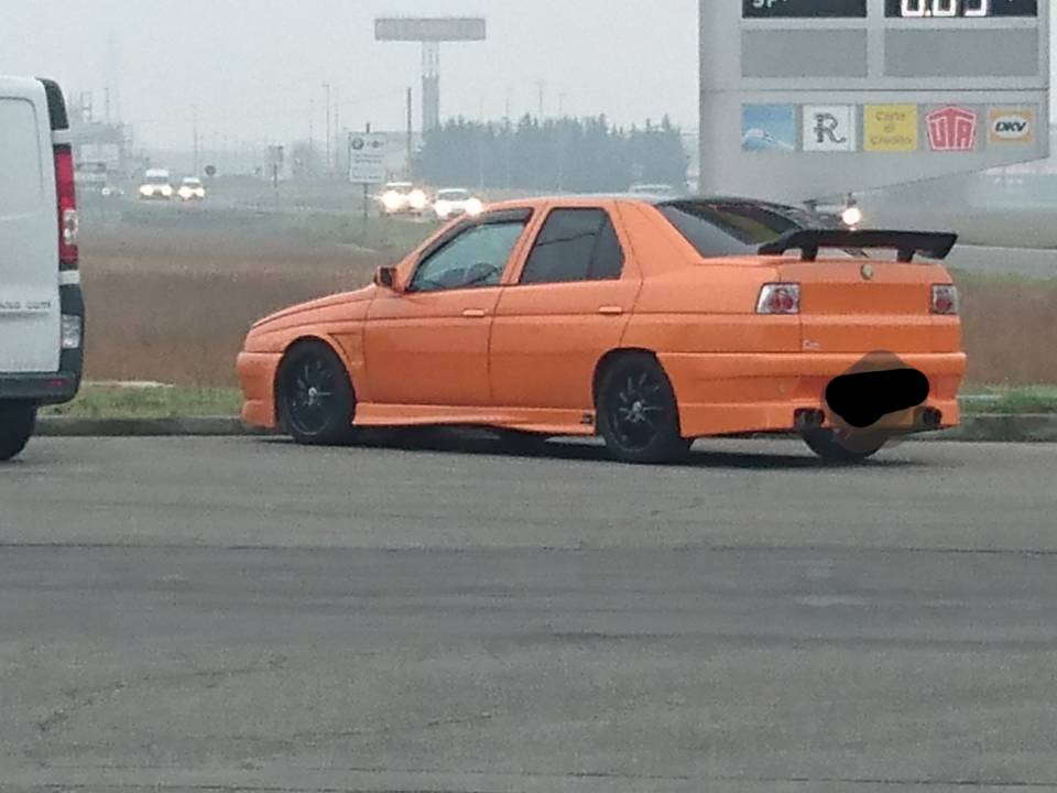 Personalmente questa 155 mi arriva a metà: OK arancione ma non questa tonalità, OK alettone nero, OK componenti che portano le linee a terra stile DTM (seee...magari!) ma assolutamente no le modifiche sul cofano.