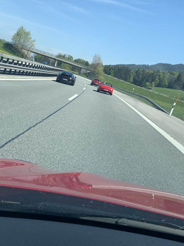 In viaggio verso l’Austria questa bella riunioncina di 3 auto italiane rosse e una bella gattona nera tedesca ma penso che nessuno abbia problemi a riconoscerne la bellezza :D