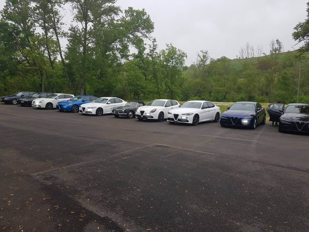 Comunque davanti una bella Giulietta rossa di un tedesco, seconda una Barchetta tedesca tenuta benissimo e dietro la mia Giulietta rossa da cui abbiam scattato la foto....