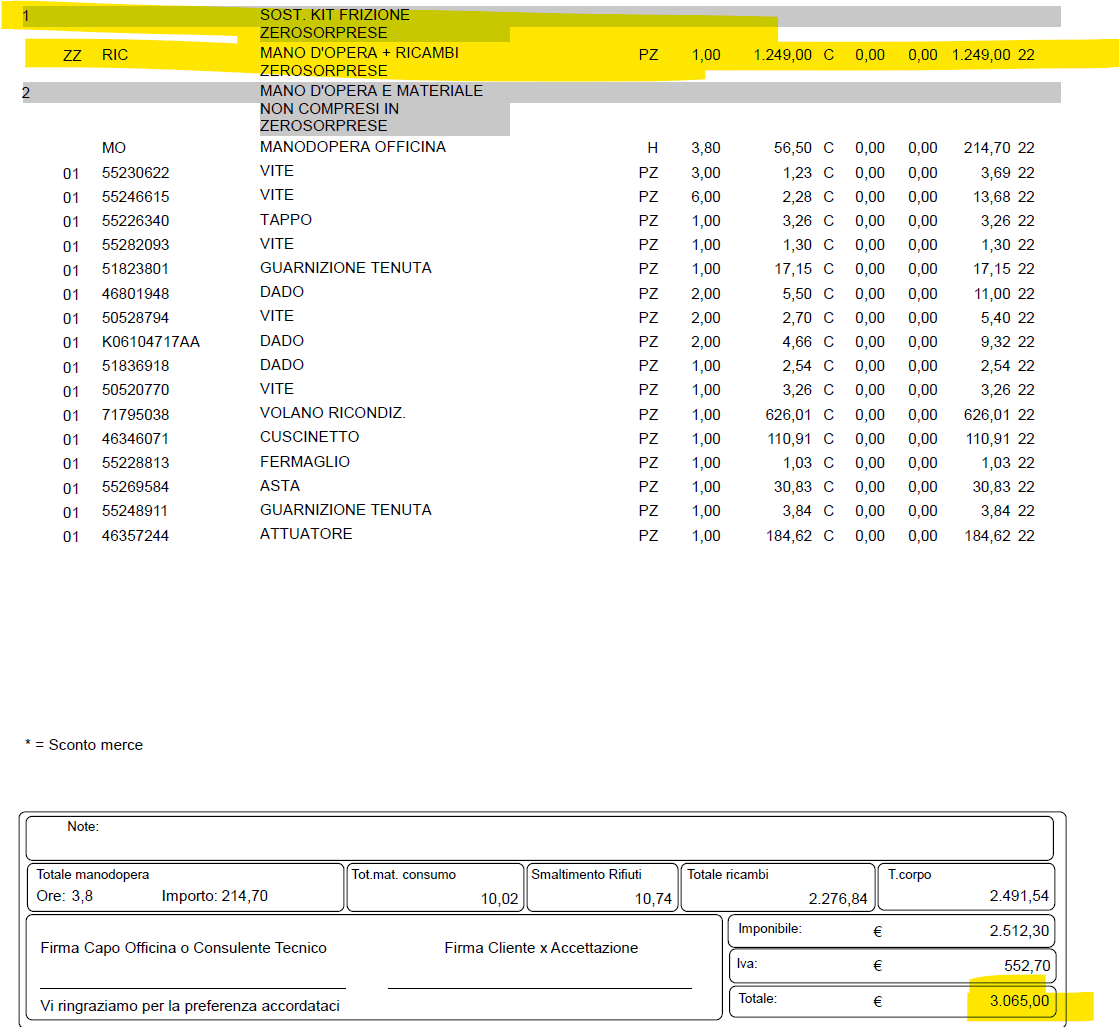 Sono poi stato da un altra concessionaria che mi accetterebbe il coupon zerosoprese di Alfa Romeo per il solo kit frizione (1500 euro manodopera inclusa), a cui ho chiesto di aggiungere i componenti accessori e la sostituzione del volano ( che vedete nell'immagine sotto riportato in sezione 2):