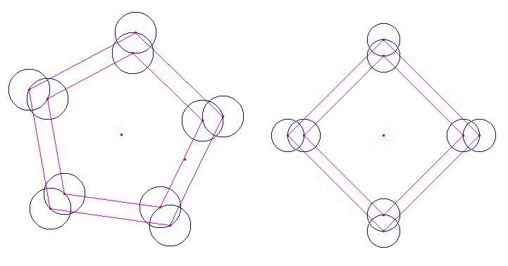 quindi se il cerchio ha i fori abbastanza larghi è possibile usando bulloni autocentranti montare su un 5x98 un cerchio da 5x100 e viceversa in quanto variando la dimensione della circonferenza i fori rimangono nella stessa retta che unisce il foro con il centro della circonferenza ( sia 5 che 4 che 12 fori )