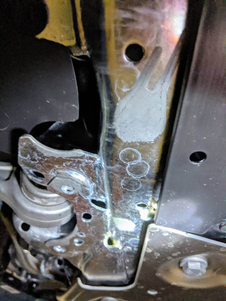 L’anteriore in effetti sembra più pregiato, quel telaietto potrebbe essere di acciaio zincato, dalla forma non è sicuramente in alluminio come lo sono invece i braccetti.