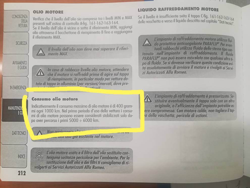 Se si dovesse verificare consumi di olio eccessivo allora bisognerà provvedere a provvedimenti.