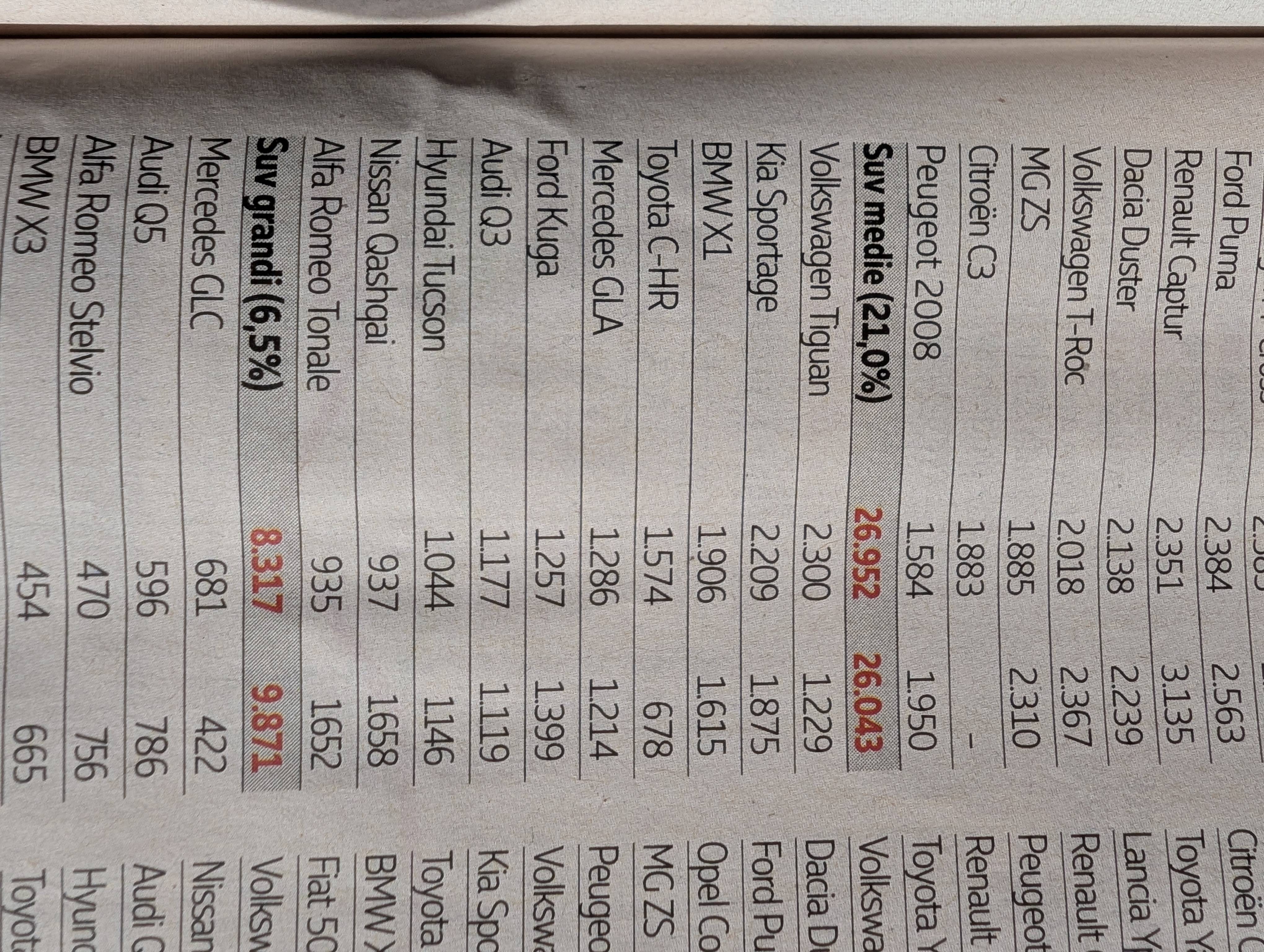 Sono anche questi i motivi sta tranquillo, chi spende 50 Mila euro guarda a tutto , poi c'è a chi va bene come voi che l'avete comprata e a chi no . Ovviamente è un insieme di motivi ... Però è un dato di fatto che Tonale non piace, nel mercato italiano non esiste che sta al 10posto dovrebbe stare al primo! I motivi saranno tanti perciò ho chiesto le vostre motivazioni....Sei stato criticato perché ti sei sempre attaccato a cose banali, che stai ripetendo come le plastiche posteriori o l'assenza di maniglie. Dubito Tonale non venda per le plastiche posteriori.. e poi per i continui confronti con Giulia/Stelvio, altro progetto, altri tempi, altro segmento (sono curioso poi di vedere a livello globale le vendite di Giulia/Stelvio/Tonale, chi ne fa di più, non solo in Italia). E ancora perché entravi in ogni discussione in cui si parlava dei problemi di Tonale per criticarla, cosa che non aiuta il clima nè le persone.