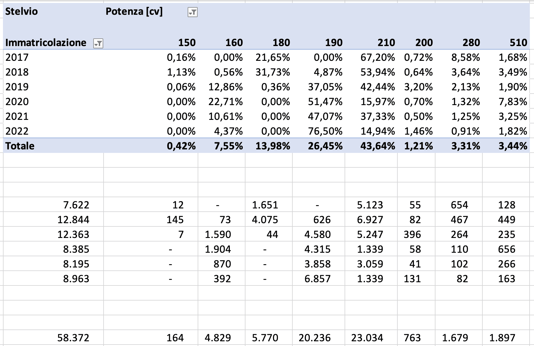 mi stupisce sempre vedere che le percorrenze normali sono 10.000 chilometri all'annoMassicci!! Sembra che si spacchino in maniera più composta ed educata rispetto a Stelvio