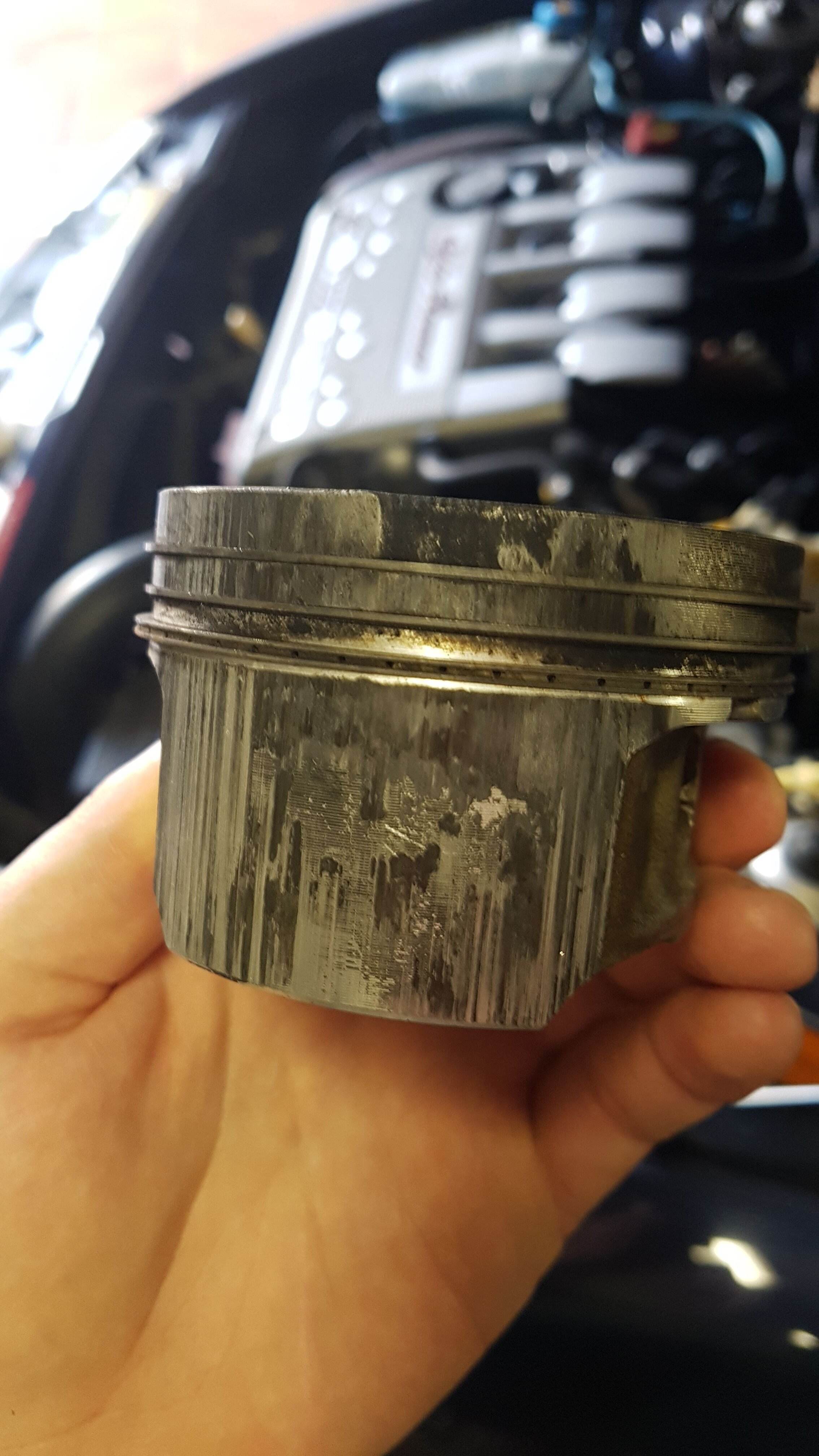 ti conviene buttarla via perché il motore continua ad andare in detonazione e si mangia il bordo perimetrale del pistone... grattuggiandolo e di conseguenza usura le fasce come la capocchia dei fiammiferi ..