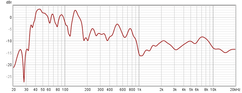 Prima di tutto risposta non molto lineare nell'arco per il quale è dato, cioè 35 - 125. Il taglio netto a 125 si vede e va bene, secondo specifiche, la parte prima è a mio avviso deludente. Magari è davvero la posizione, o va equalizzato bene.