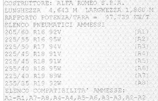 Qui sul forum ho visto almeno 4 indicazioni diverse sul libretto in merito ai pneumatici. Questo è il mio libretto