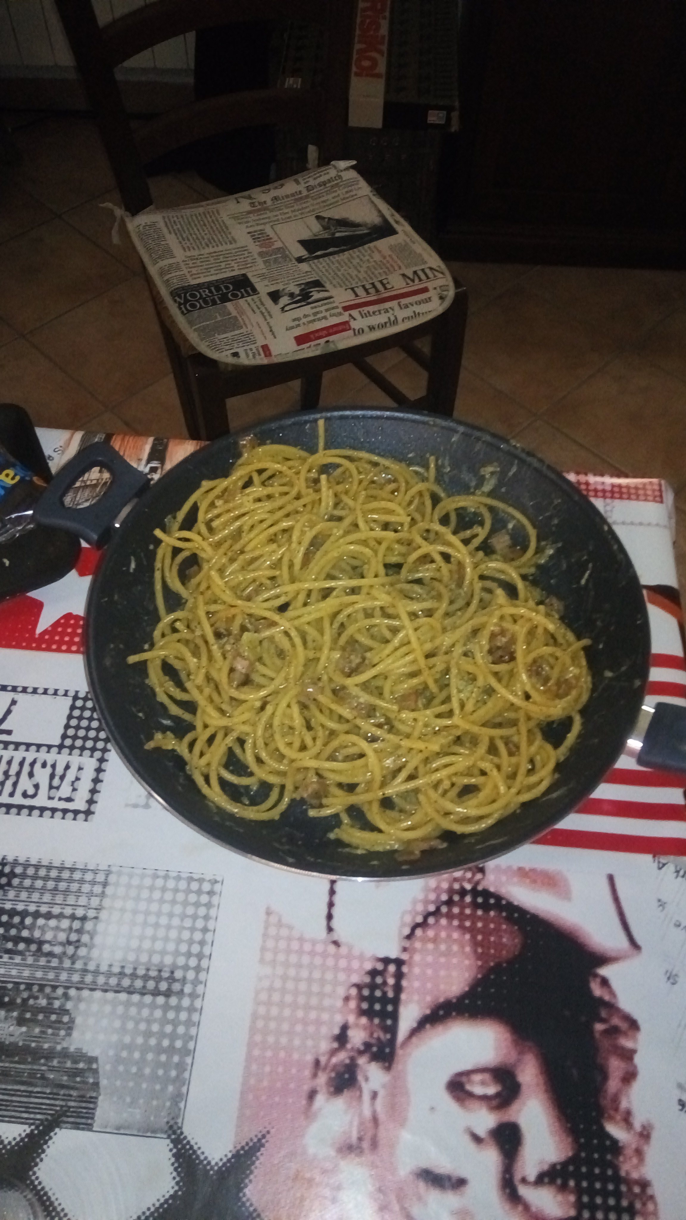 Ed eccola qui, è una paella particolare, di pesce e fatta con la pasta al posto del riso, al nero di seppia