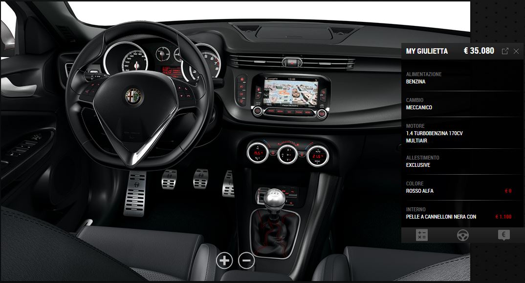 Sul sito del motorvillage ho visto che hanno proprio qui a Roma una Giulietta rossa 170cv con cambio TCT (oddio lo avrei preferito manuale...) configurata esattamente come vorrei io... allestimento exclusive (ok quindi i sedili sono in pelle e tessuto, non sola pelle, ma ci posso passar su), tetto apribile, radionav, bixeno, bose.... a 16.900 euro :smiley_001:
