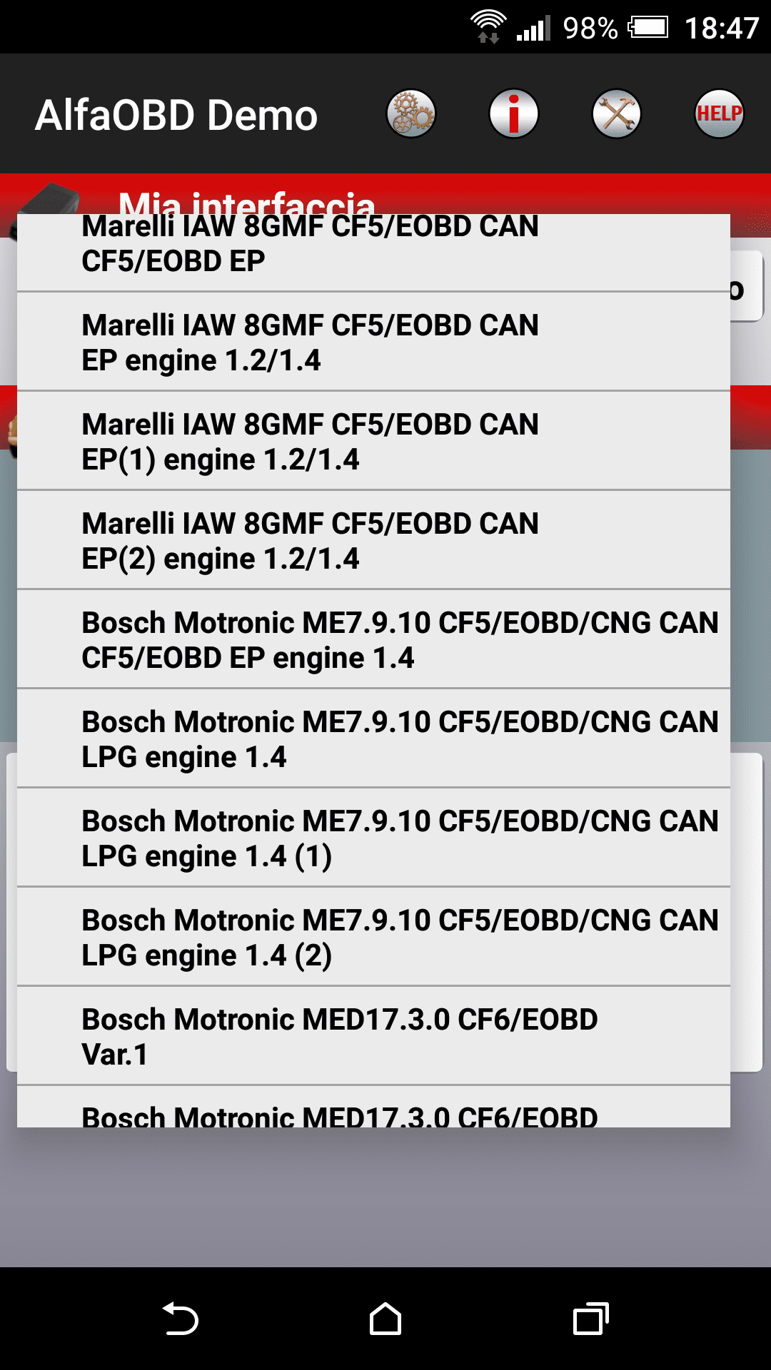 ciao, in anzi tutto apri il cofano per vedere se la tua è bosch o marelli, poi fai una foto all'etica se riesci, oppure li provi uno alla volta e se non sbaglio se il codice iso centralina è sbagliato dovrebbe dirtelo, a quel punto ne scegli un'altra e provi fin che non ti dà errore. Le CNG sono a gas... prova a vedere nel libretto il numero motore.Ciao a tutti , volevo entrare nella centralina motore con alfaobd, ma della lista non so qual'è la mia, sapete dove posso trovarlo?su giulietta 1.4multiair 170,grazie in anticipoVisualizza allegato 178702
