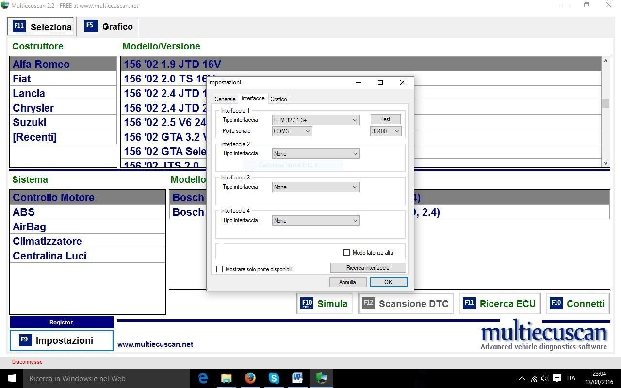 Salve. Fino a qualche tempo fa Il mio Elm 327 si connetteva tramite la porta com 8 alla centralina dell'auto.