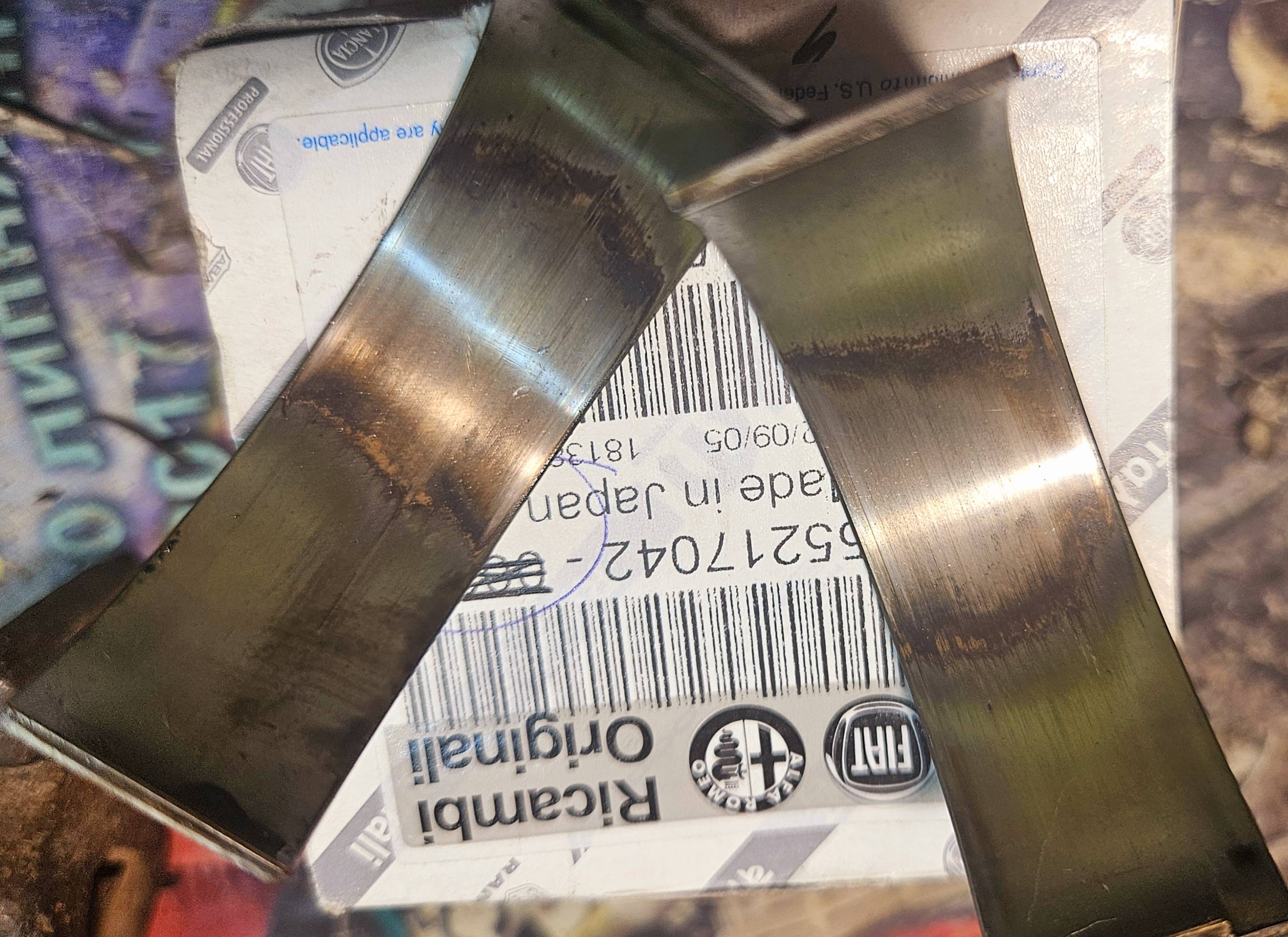 per correttezza ecco come si presentano i cuscinetti di biella sul nostro 2.2 dopo 100mila chilometri, se si cambia l'olio come prescritto da Stelantis, come dicevo prima, non ha senso cambiare la pompa dell'olio (l'unica (eccezione è se si è allentato o presenta un difetto di fabbricazione), sostituirla con una nuova pompa dell'olio ritarda solo leggermente la ripetizione. L'accensione della spia motore non risolve il problema dell'usura dei cuscinetti.