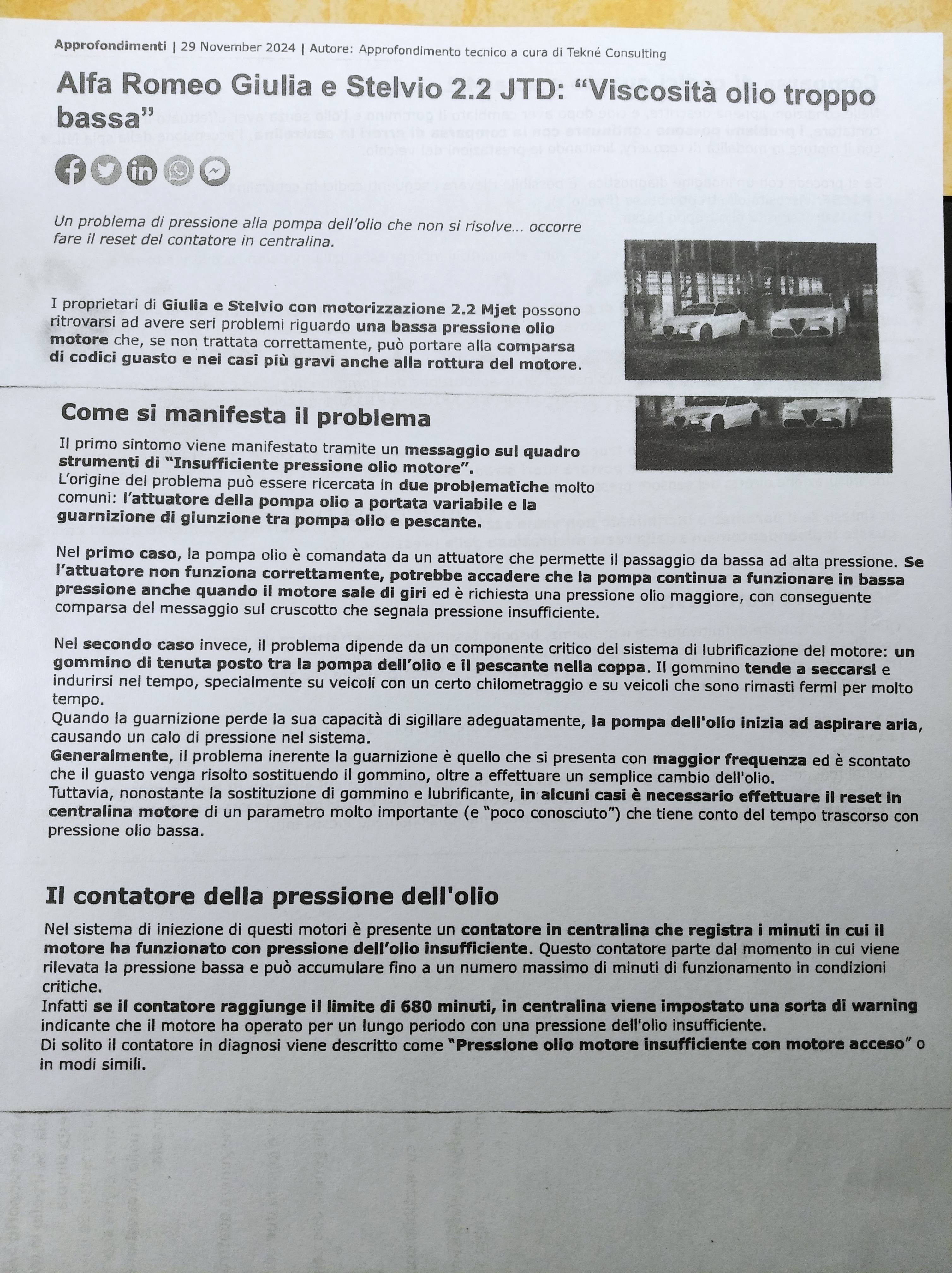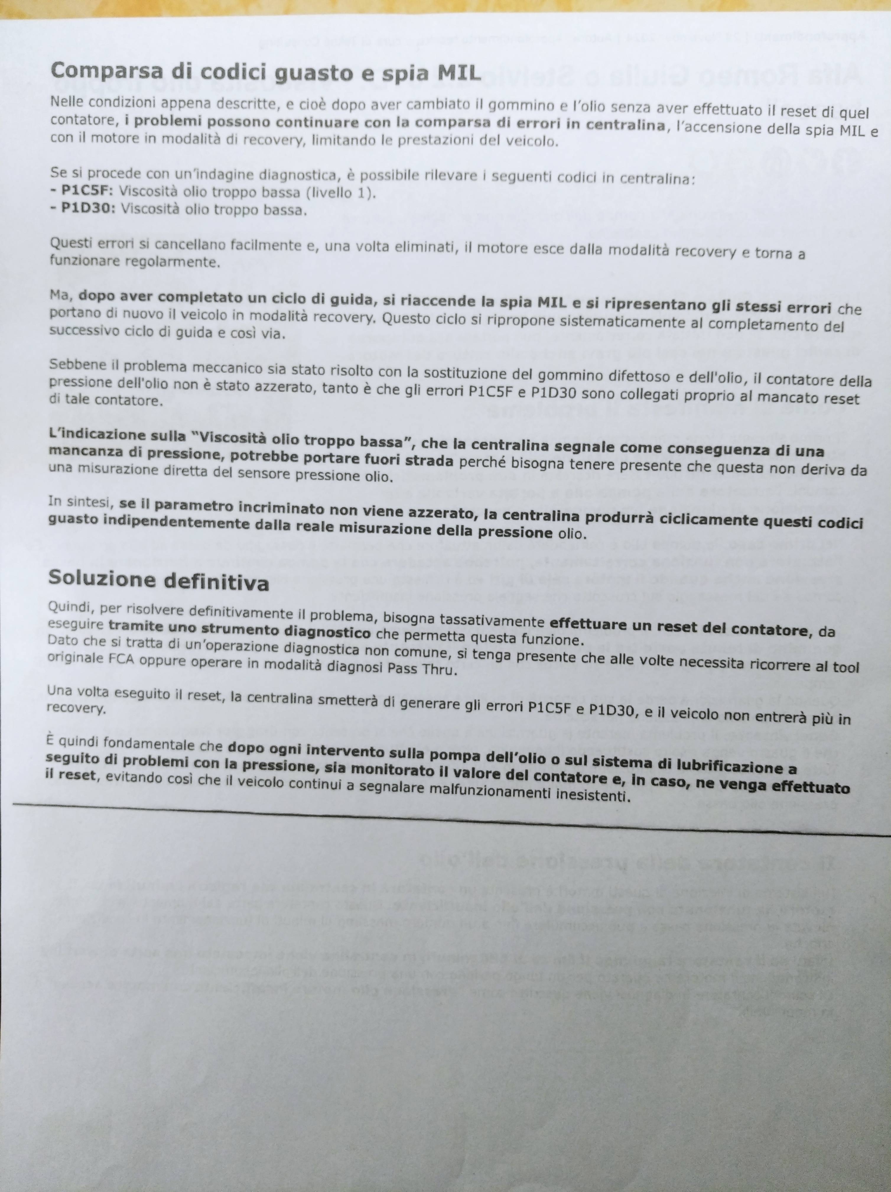 Errore Insufficiente pressione olio motore sui motori 2.2 MJTD - ClubAlfa