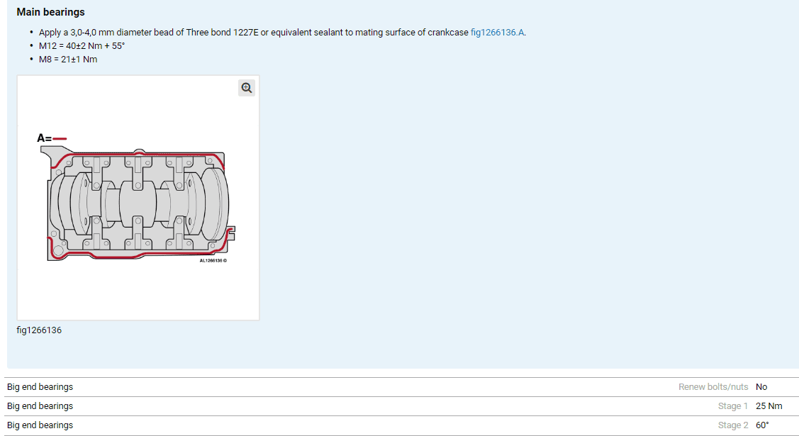 Questo vale per le bielle.Scusate la domanda forse da incompetente, ho capito bene che i cuscinetti di banco si serrano con una coppia di 40Nm+55* ed i cuscinetti di biella si serrano con una coppia di 21Nm---?