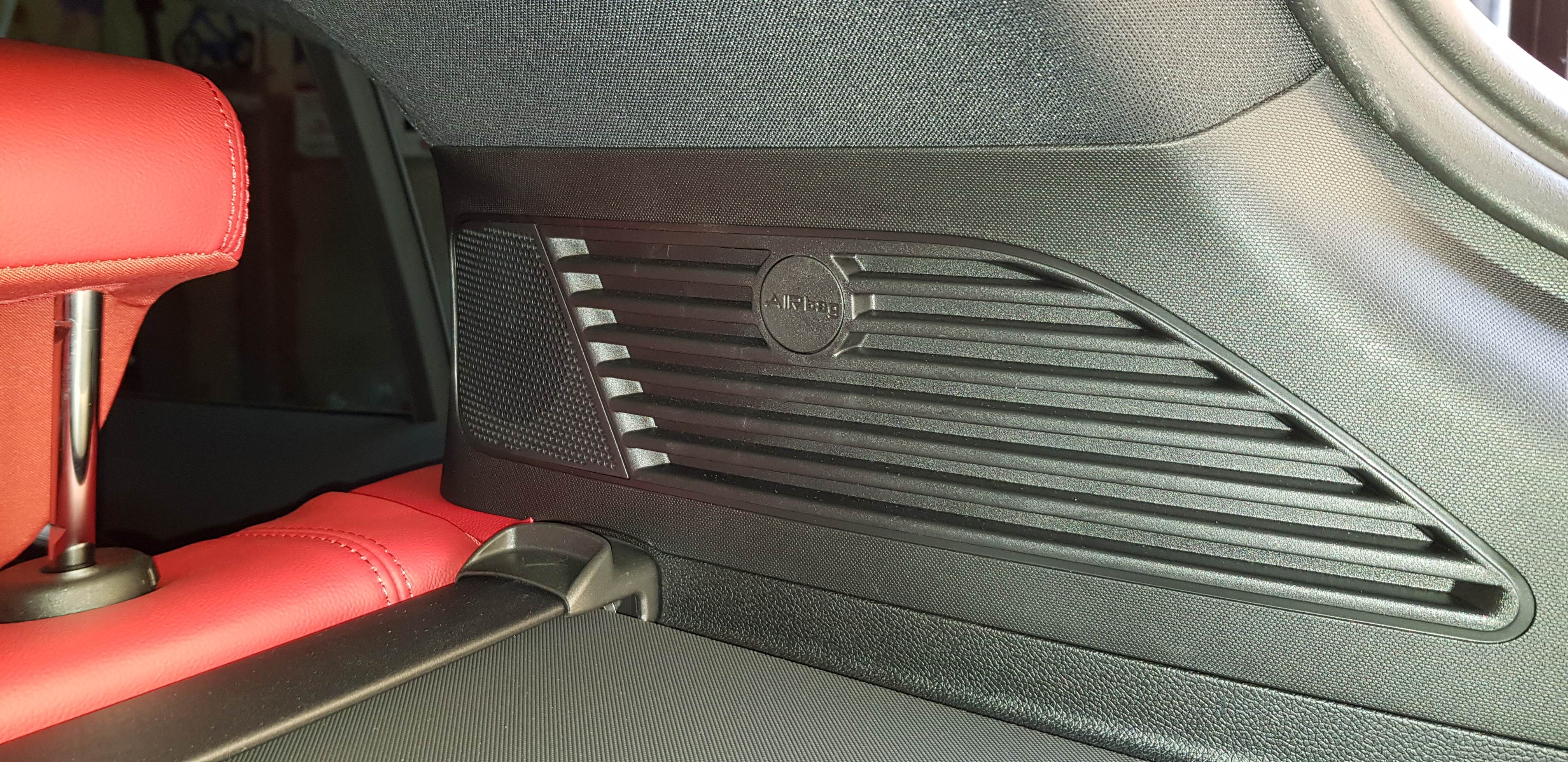 Dal montante sopra il finestrino lateraleQuindi mi fate vedere da dove esce l airbag? perché tra poggiatesta e griglia per il cane, se dovesse uscire da dove c e' la scritta ti saluto