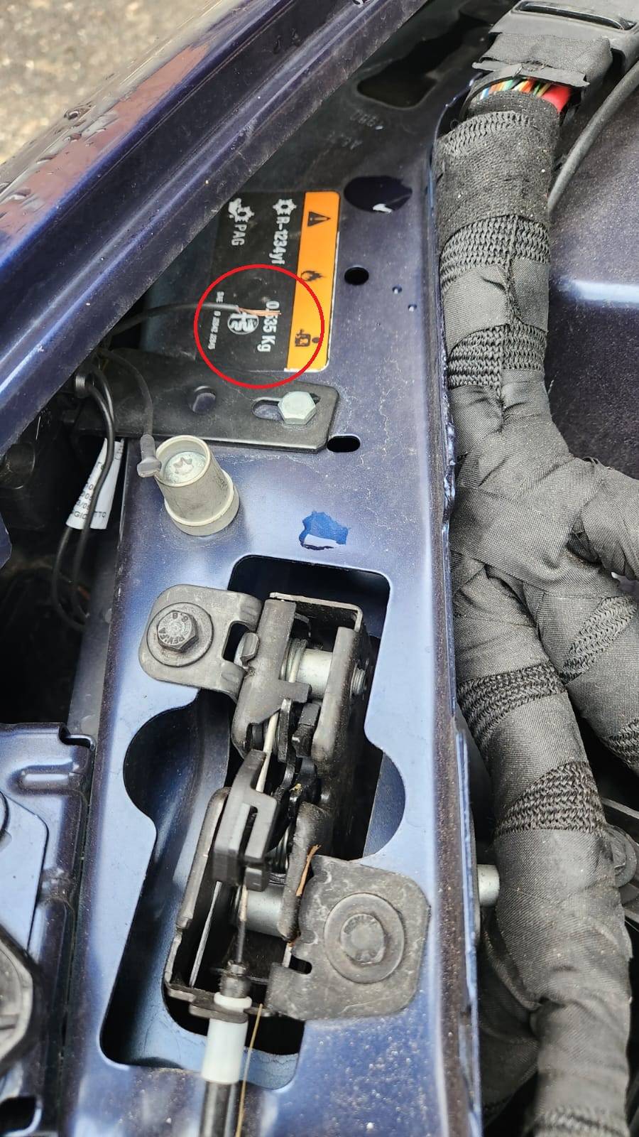 1) Probabilmente è stato versato durante il rabboccoStavo dando un'occhiata sotto al cofano e ho notato due cose, che volevo sottoporvi