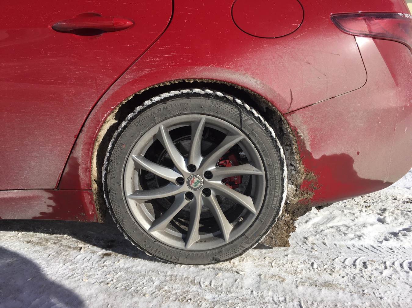 Mi attacco a questo thread... primo inverno con la mia Giulia! Sono stato qualche giorno tra Bormio e Livigno, con un poco di neve in strada. Ho una TP 150cv AT8 con gomme invernali da 18 differenziate, delle Kumho wintercraft.