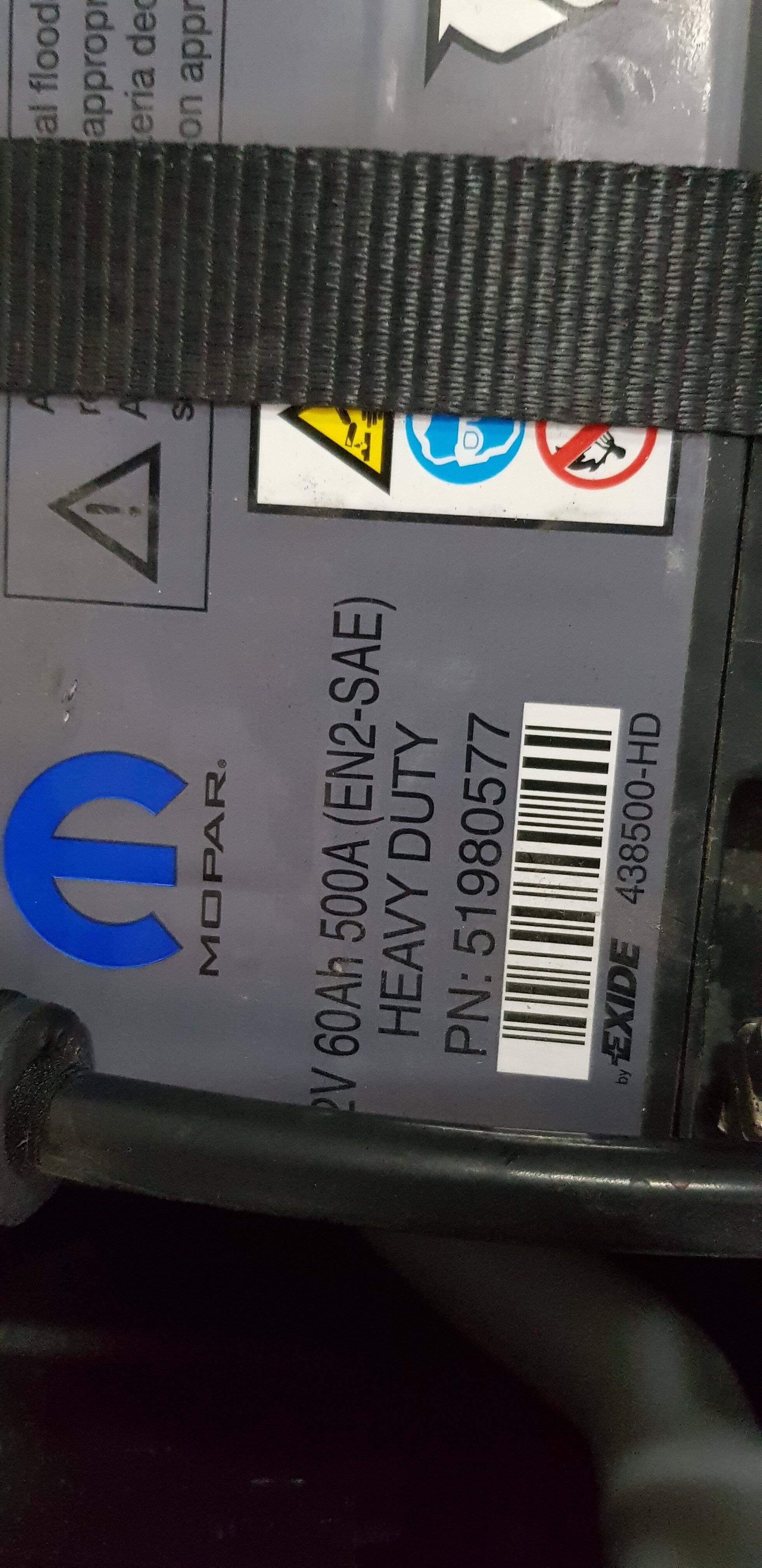 LA batteria che monto è marchiata Mopar (originale) con scritto 60Ah 500A heavy duty PN 51980577