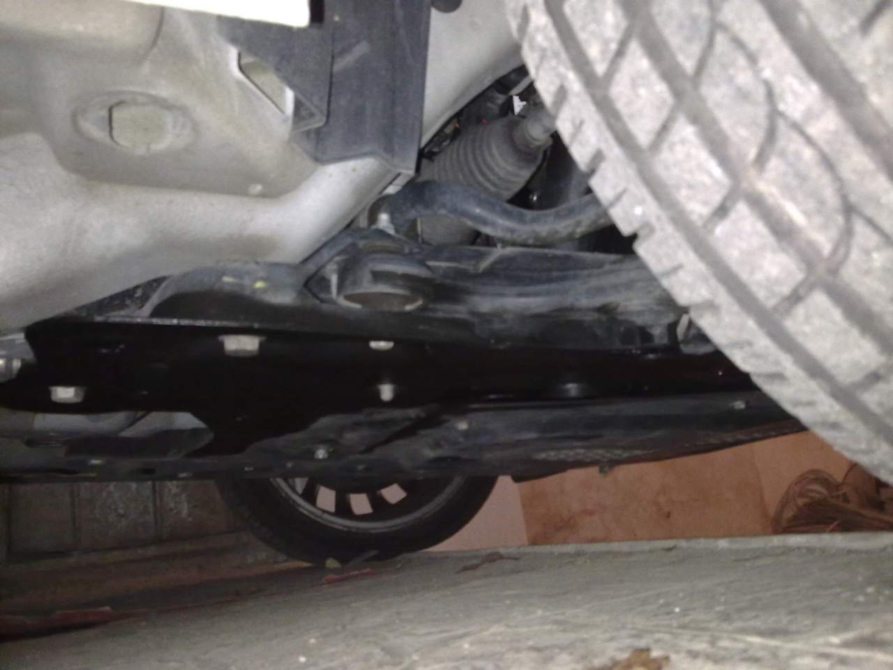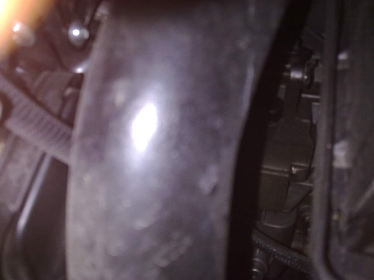 lato passeggero, proprio dietro la gomma, dove c'è anche il semiasse... tutta quella parte è stata inondata di olio, solo che la lecita provenienza non si vede perchè c'è sia la gomma e cerchio e poi le coperture di plastica... quindi presumo che da questo lato ci sia il filtro dell'olio anche se da sotto e da sopra non si vede...